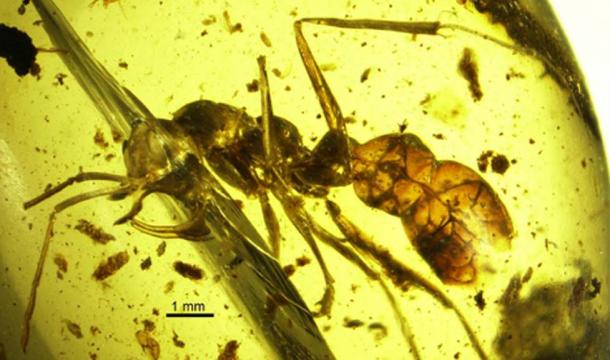 Das Exemplar wurde in 98 Mio Jahre altem Bernstein aus Myanmar gefunden. Es ist eine neue Art von „Höllen-Ameisen“, die mit „dornigem, metallischem Mund“ das Blut ihrer Opfer saugt.