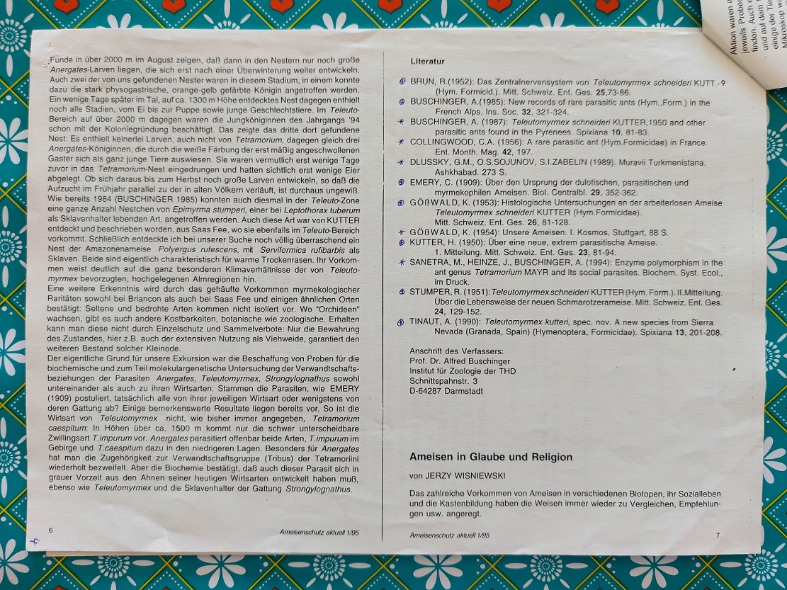 An article from Ameisenschutz Aktuell by Prof. Buschinger...