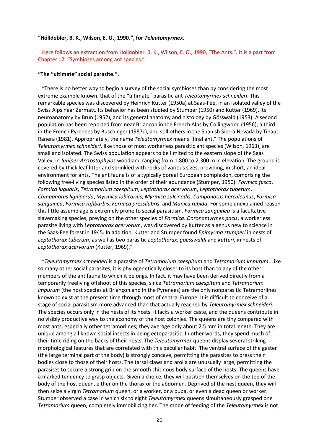 Buschinger, A. (1999) has found Teleutomyrmex schneideri in the Simplonpass (by Gabi.) in 1999. This finding was said as “in a nearby place in the Swiss Alps.”. Later on, the species wasn’t found there any more.