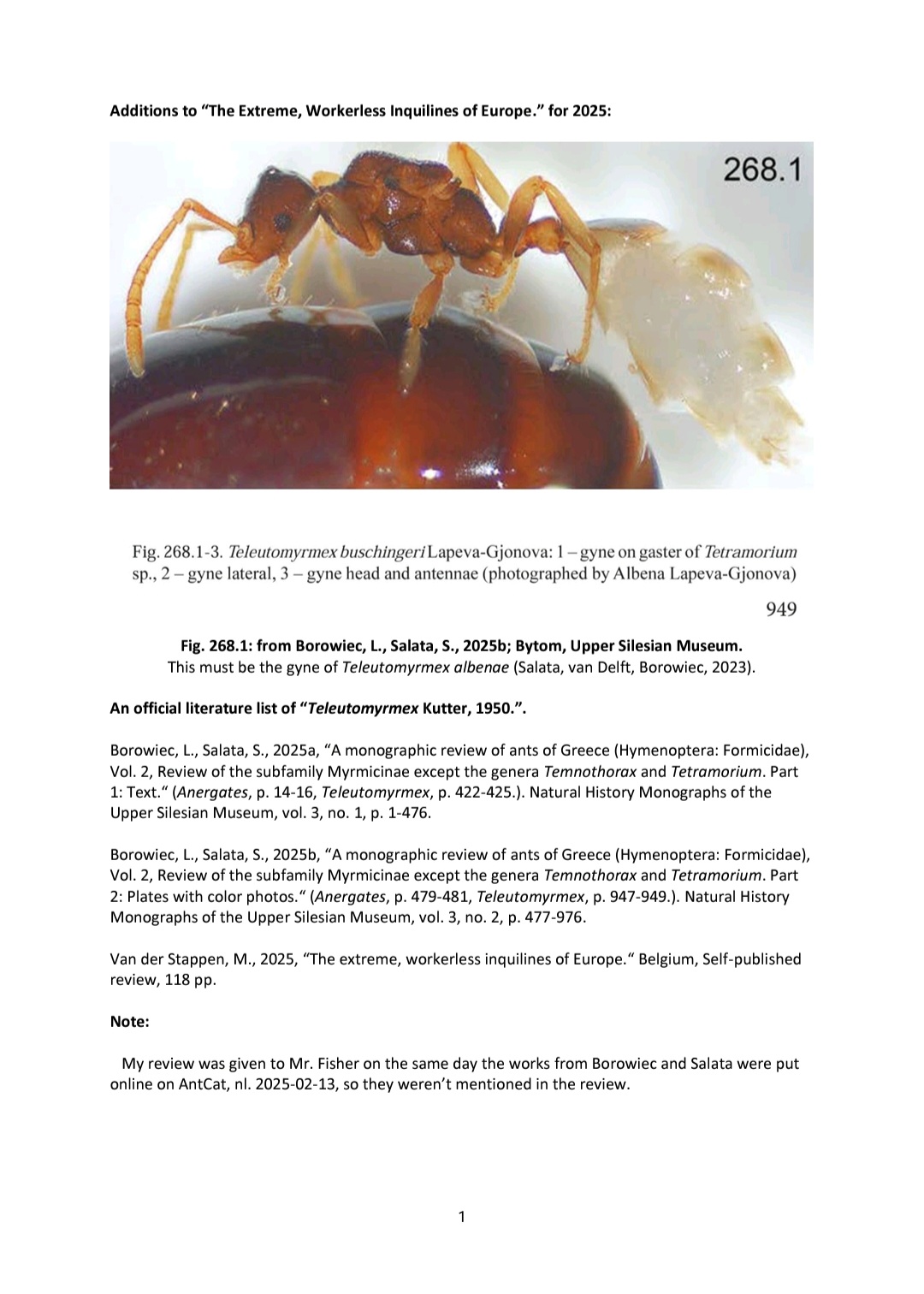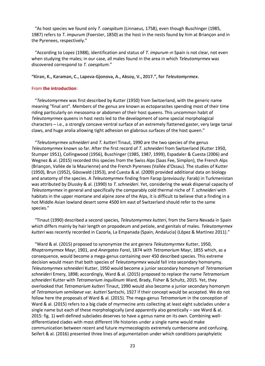 Teleutomyrmex-key from Borowiec, L., Salata, S., 2025a.
