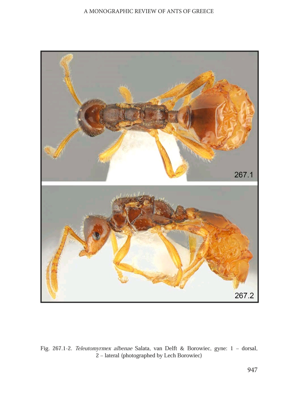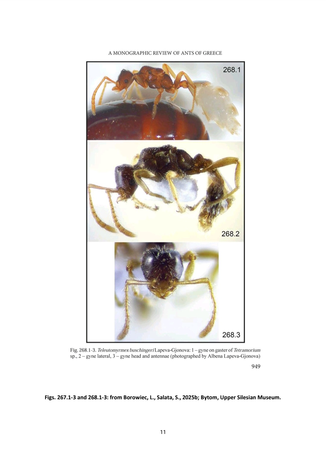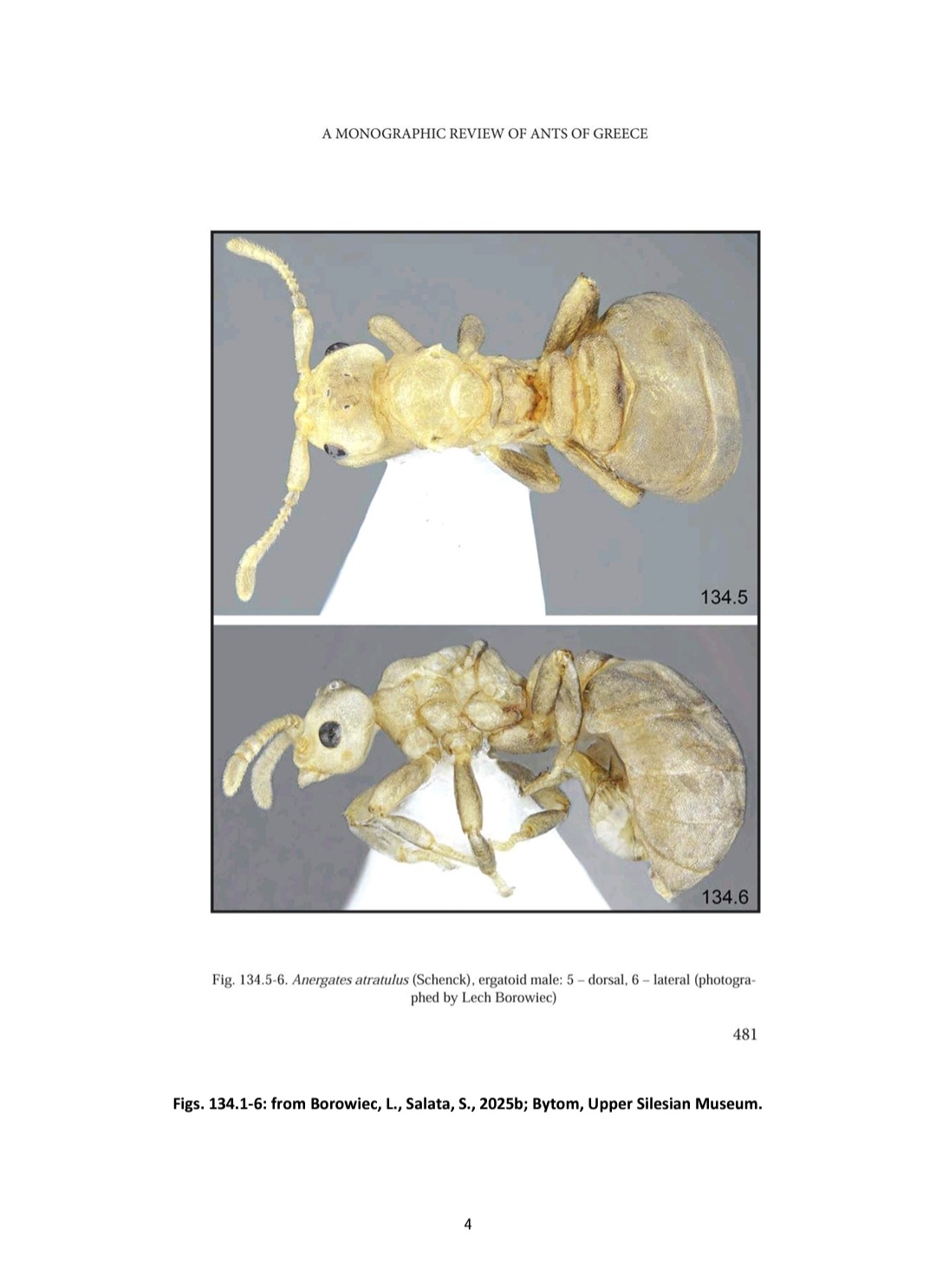 Borowiec, L.; Salata, S. 2025b. A monographic review of ants of Greece (Hymenoptera: Formicidae) Vol. 2. Review of the subfamily Myrmicinae except the genera Temnothorax and Tetramorium. Part 2: plates. Bytom: Natural History Monographs of the Upper Silesian Museum, 479-976.