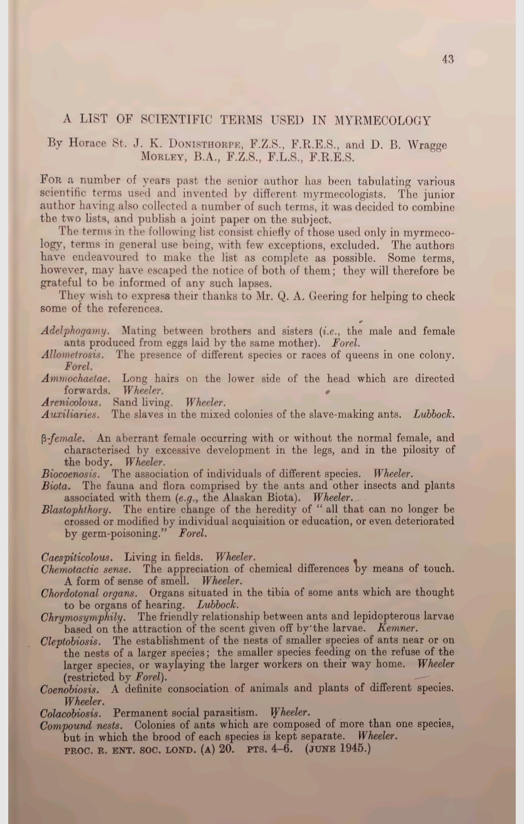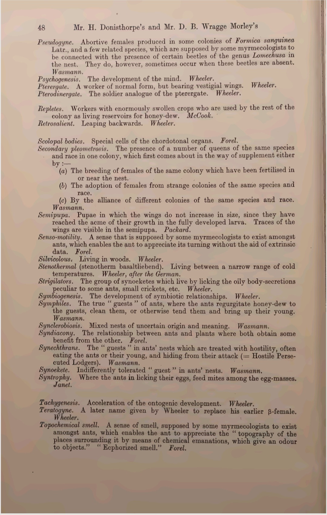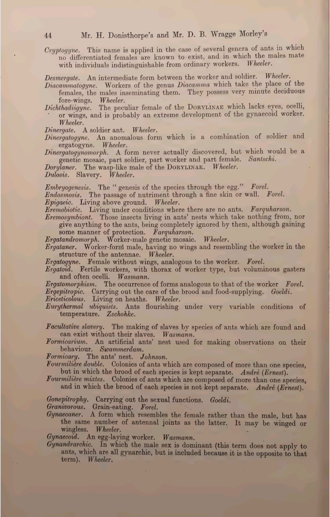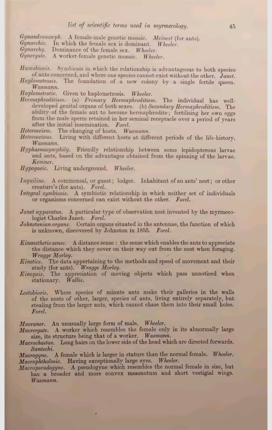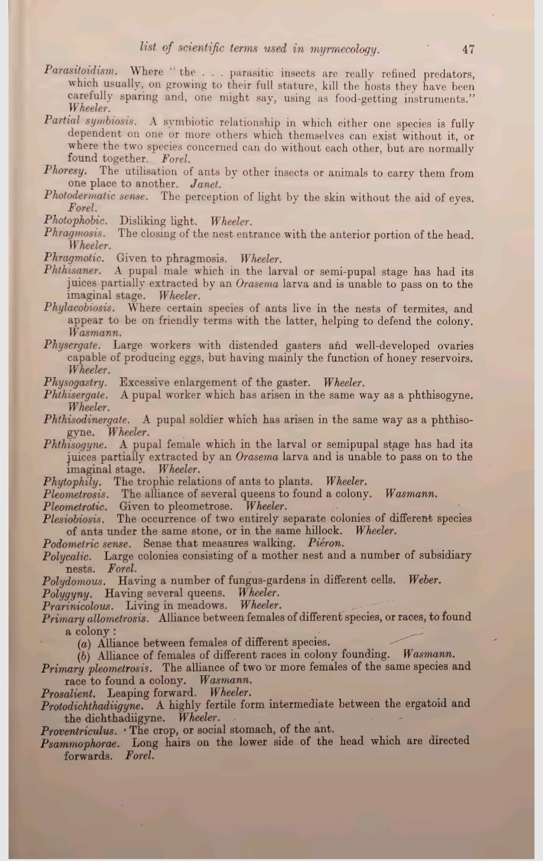 Wheeler, W. M., 1901, “The compound and mixed nests of American ants. Part II. The known cases of social symbiosis amons American ants.” American Naturalist, vol. 35, p. 513-539.