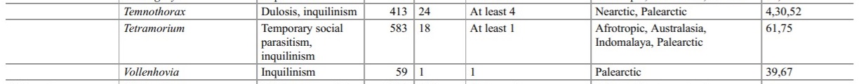 Recent revisions of the Tetramorium host species