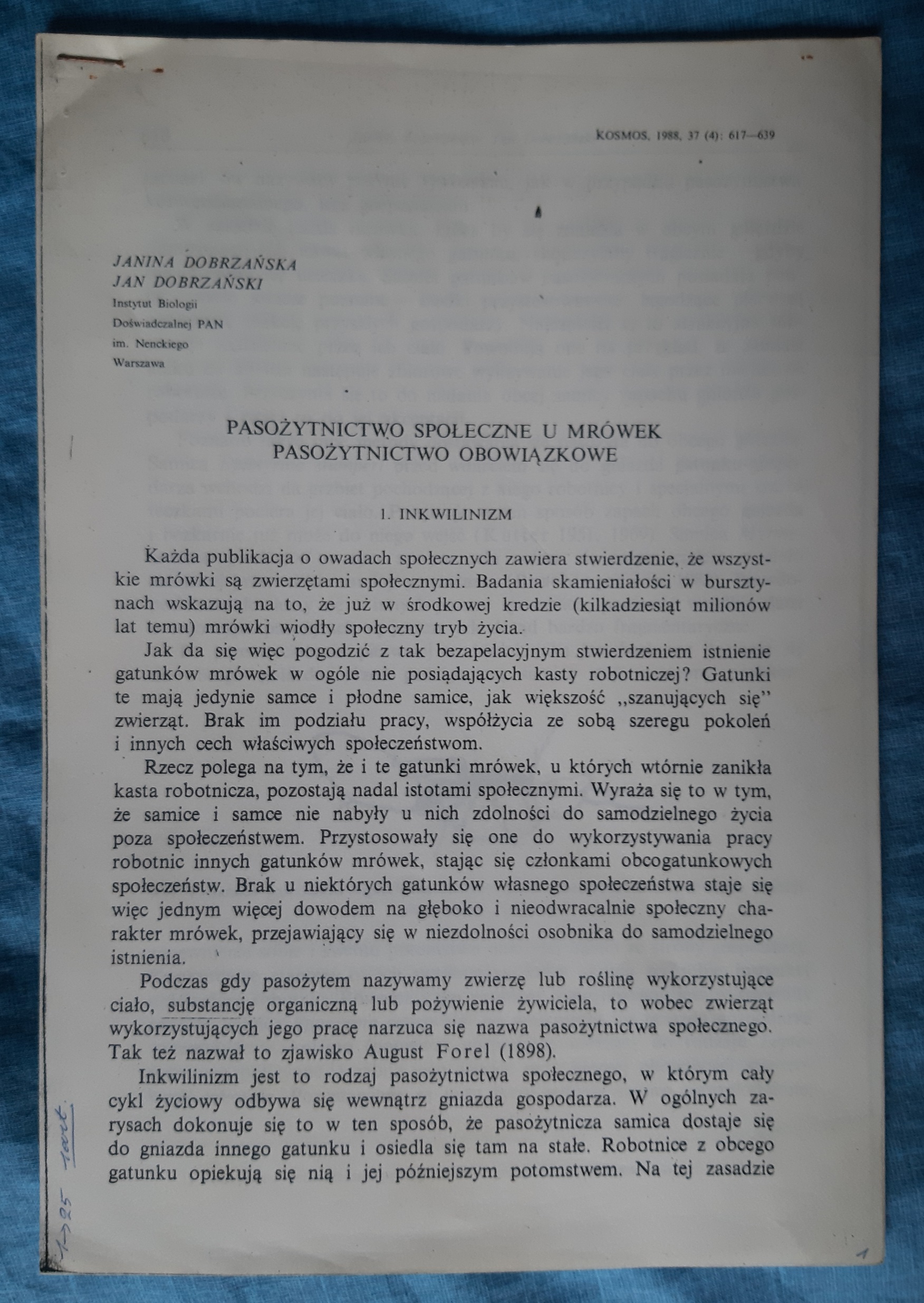 -> Dobrzanska, J. & Dobrzanski, J., 1988, “1. Inkwilinizm.”, or “[Inquilinism.]” Kosmos, vol. 37, nr.4: 617-629.