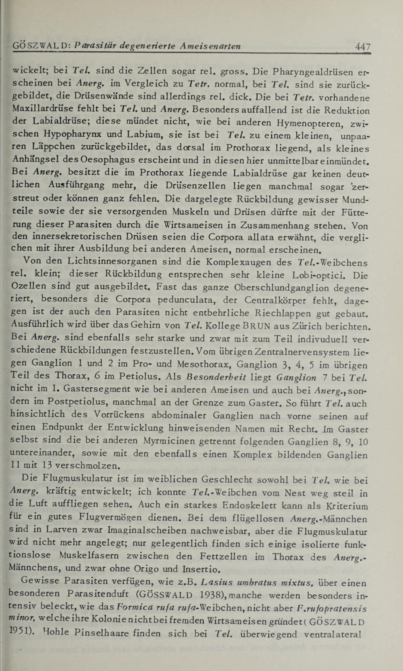 Brun, R., 1952, “Das zentralnervensystem von Teleutomyrmex schneideri Kutt. (Hym. Formicid.). III. Mitteilung.” Mitteilungen der Schweizerischen Entomologischen Gessellschaft, vol. 25, no. 2, p. 73-86.