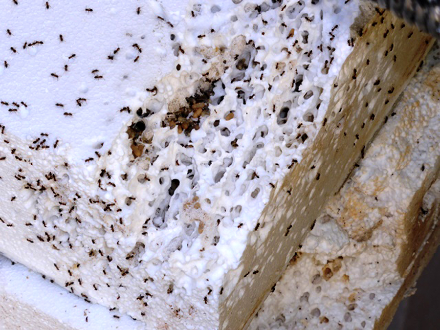 So durchlöchert haben die Ameisen das Styropor der Dämmung in dem Abrisshaus.