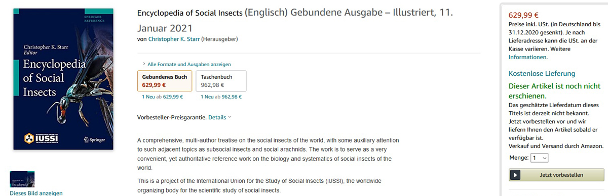 Das Buch ist noch nicht erschienen. Der Preis ist stattlich (aber das sind die Preise mancher Ameisen ja auch).