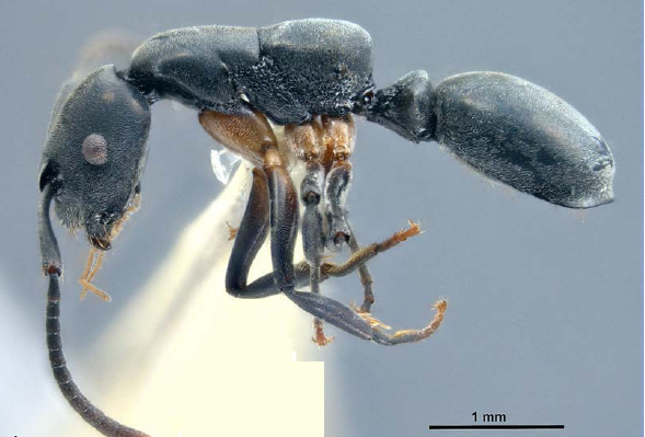 Nur zu gerne würde ich wissen, was „in“ diesem Epinotum enthalten ist, weshalb es so aufgetrieben wirkt. Doch gibt es offenbar nur wenig Tiermaterial; Königin und Männchen sind unbekannt, und die Untersuchung der inneren Organisation vieler Ameisenarten ist allgemein sehr im Rückstand gegenüber der Beschreibung der äußeren Morphologie.