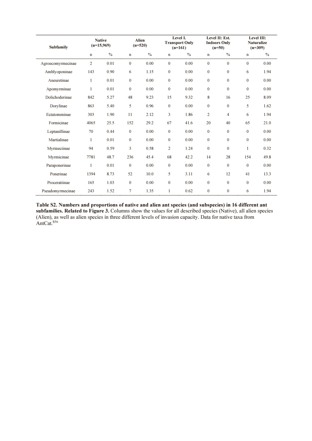 The global spread and invasion capacities of alien ants.