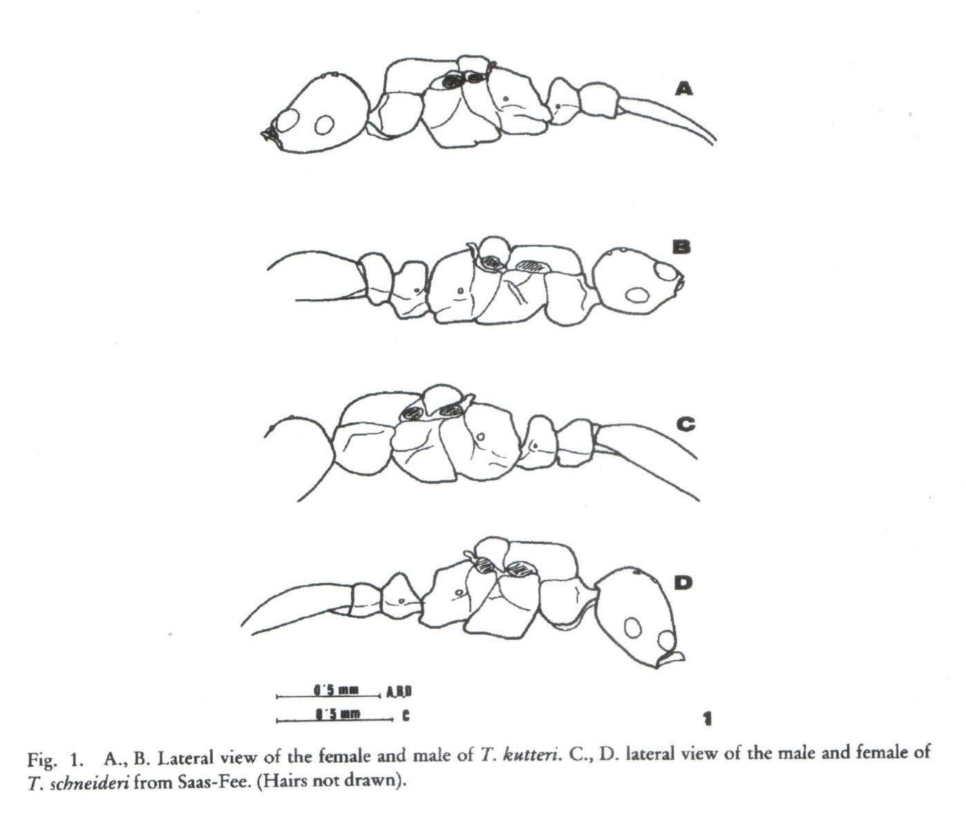 Kutter, H., 1963, “Miscellanea myrmecologica I.” Mitteilungen der Schweizerischen Entomologischen Gessellschaft, vol. 36, no. 1 and 2, p. 129-137.