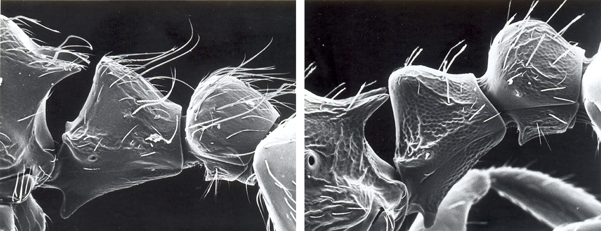 Propodeum, Petiolus und Postpetiolus von L. pocahontas (links) und der "Wirtsart" L. sp.