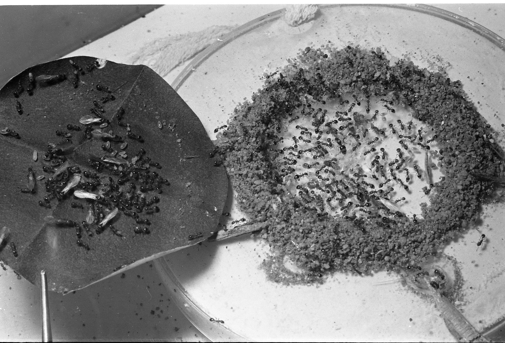 Leptothorax unifasciatus) zogen es vor, ihr Nest unter der Papierabdeckung zu bauen.
