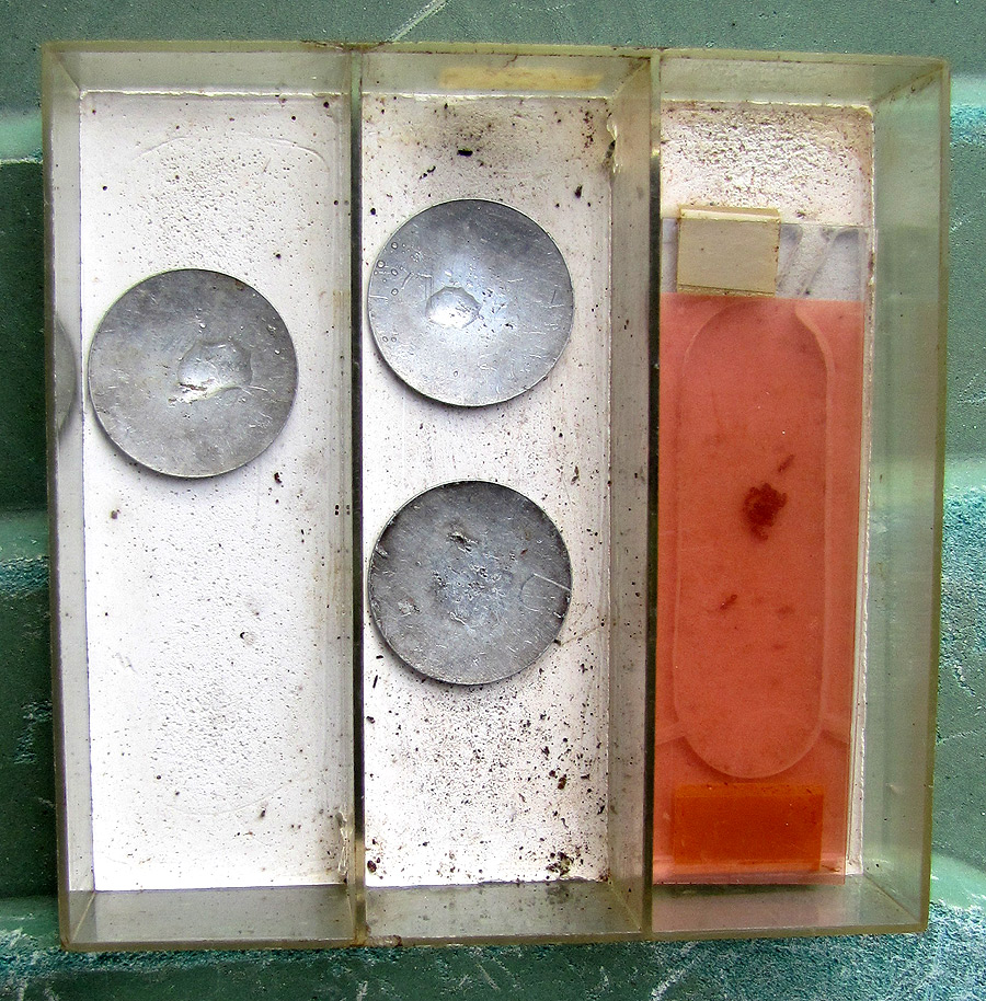 der aus der Arena hoch getragen wurde. Die Schale war mit schwarzem Papier abgedunkelt.