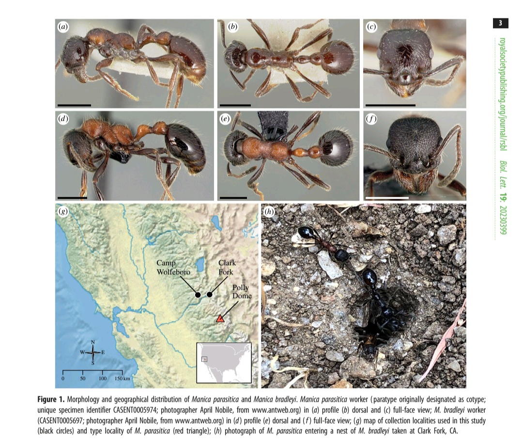 (Bild aus der Originalpublikation Prebus, M. M.et al. 2023. The rediscovery of the putative ant social parasite Manica parasitica syn. nov. (Hymenoptera: Formicidae)