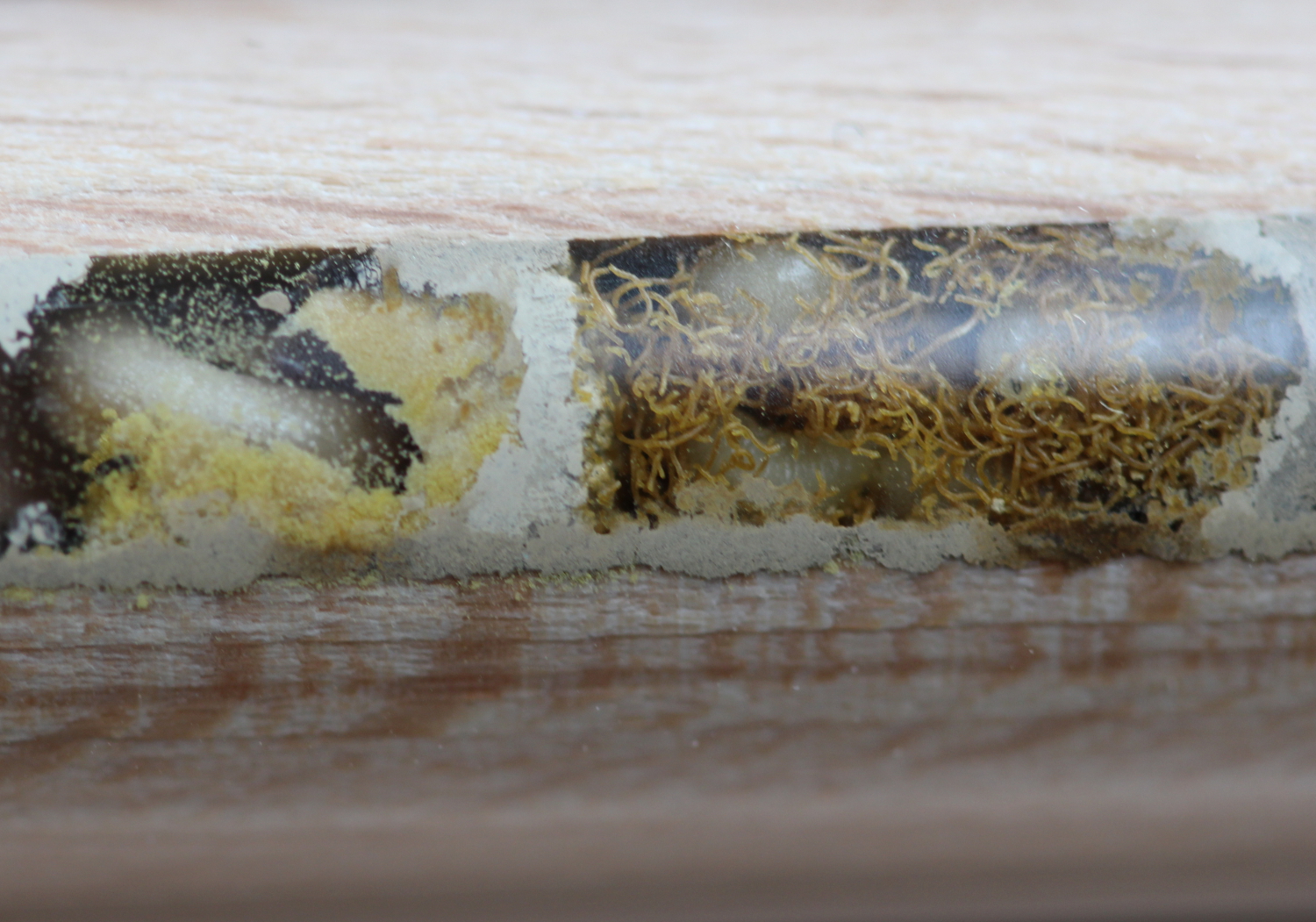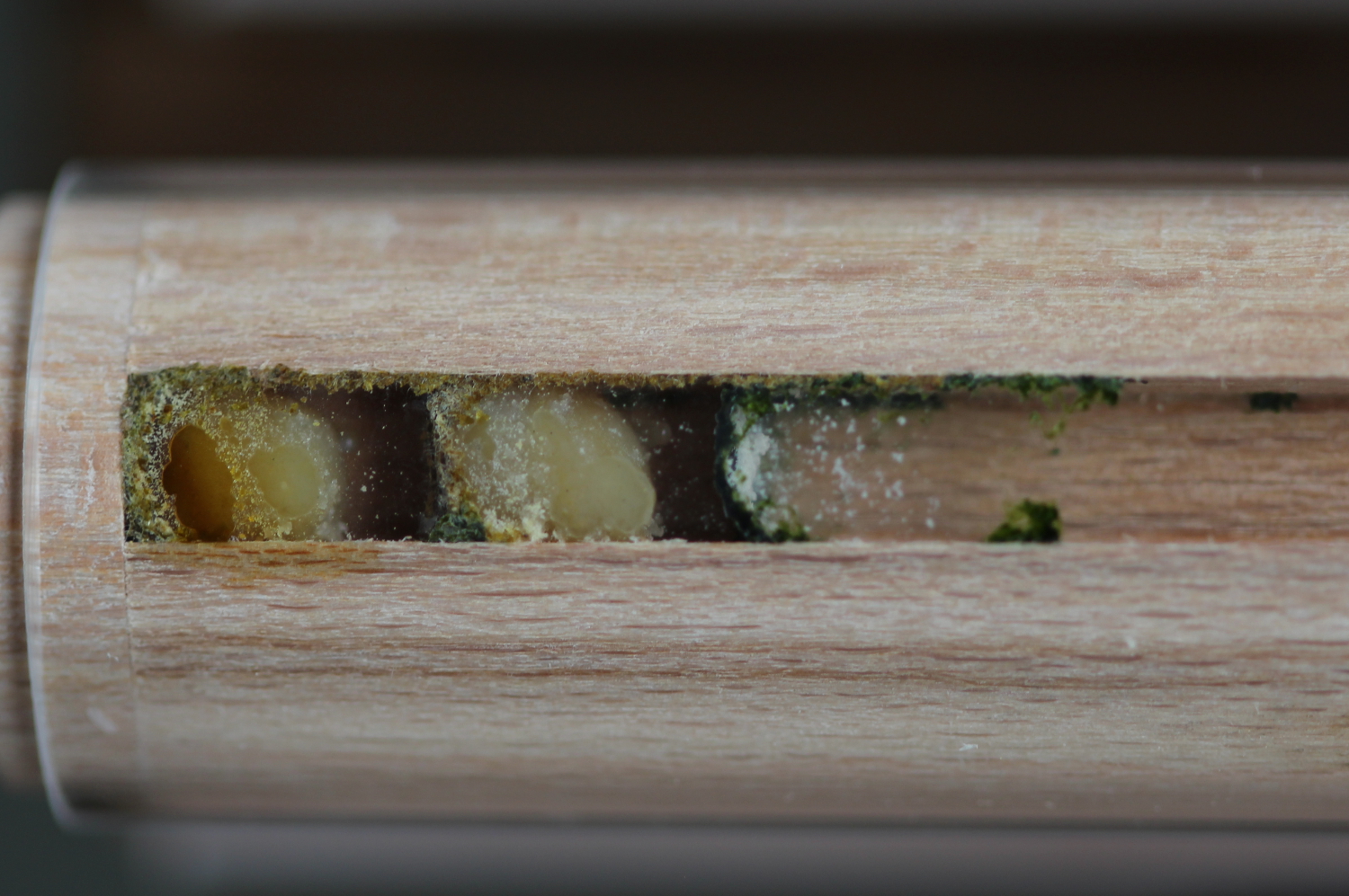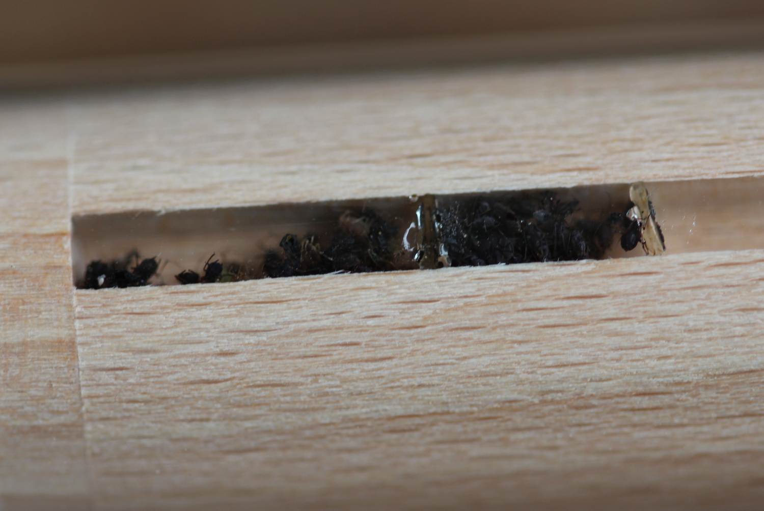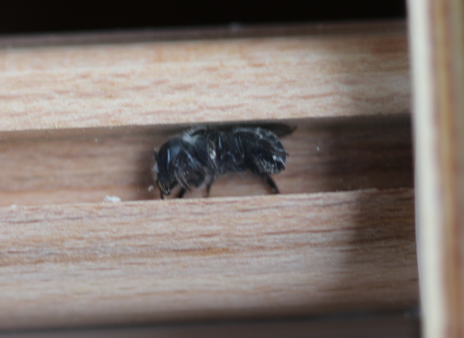 Eben kam eine Biene reingeflogen, hat sie nach und nach untersucht und hat sich scheinbar entschieden, das eins dieser Löcher ein schönes neues Heim wäre. Ich hab Musik angemacht, weil ich dachte vielleicht findet sie die Vibrationen unangenehm aber... meine Biene ist f*ing Metal.