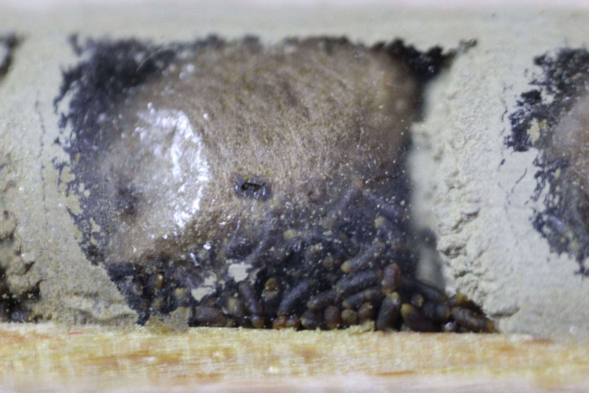 Ich hab sie mit einem Schachlikspiel berührt (Zahnstocher war zu kurz) und selbst das stört sie nicht.