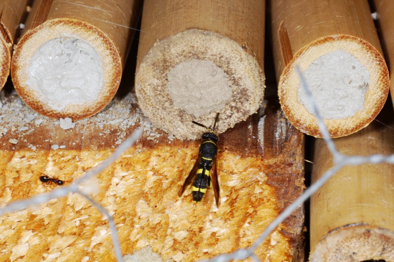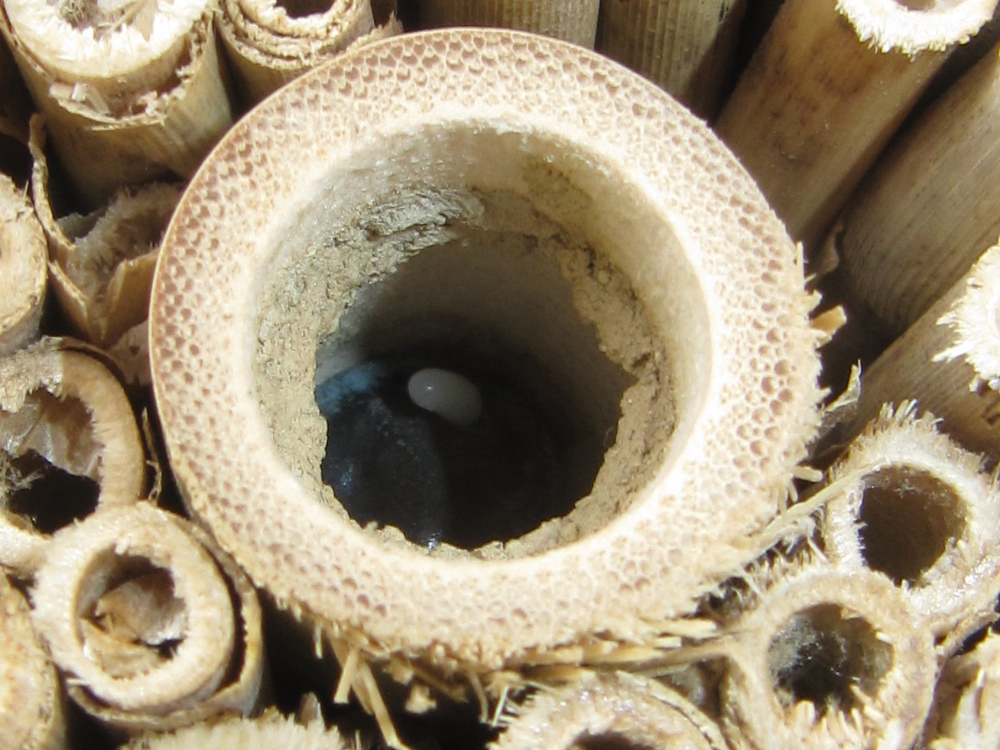 Osmia cornuta hat sich entschieden, ein 20 mm Bohrung zu besiedeln...