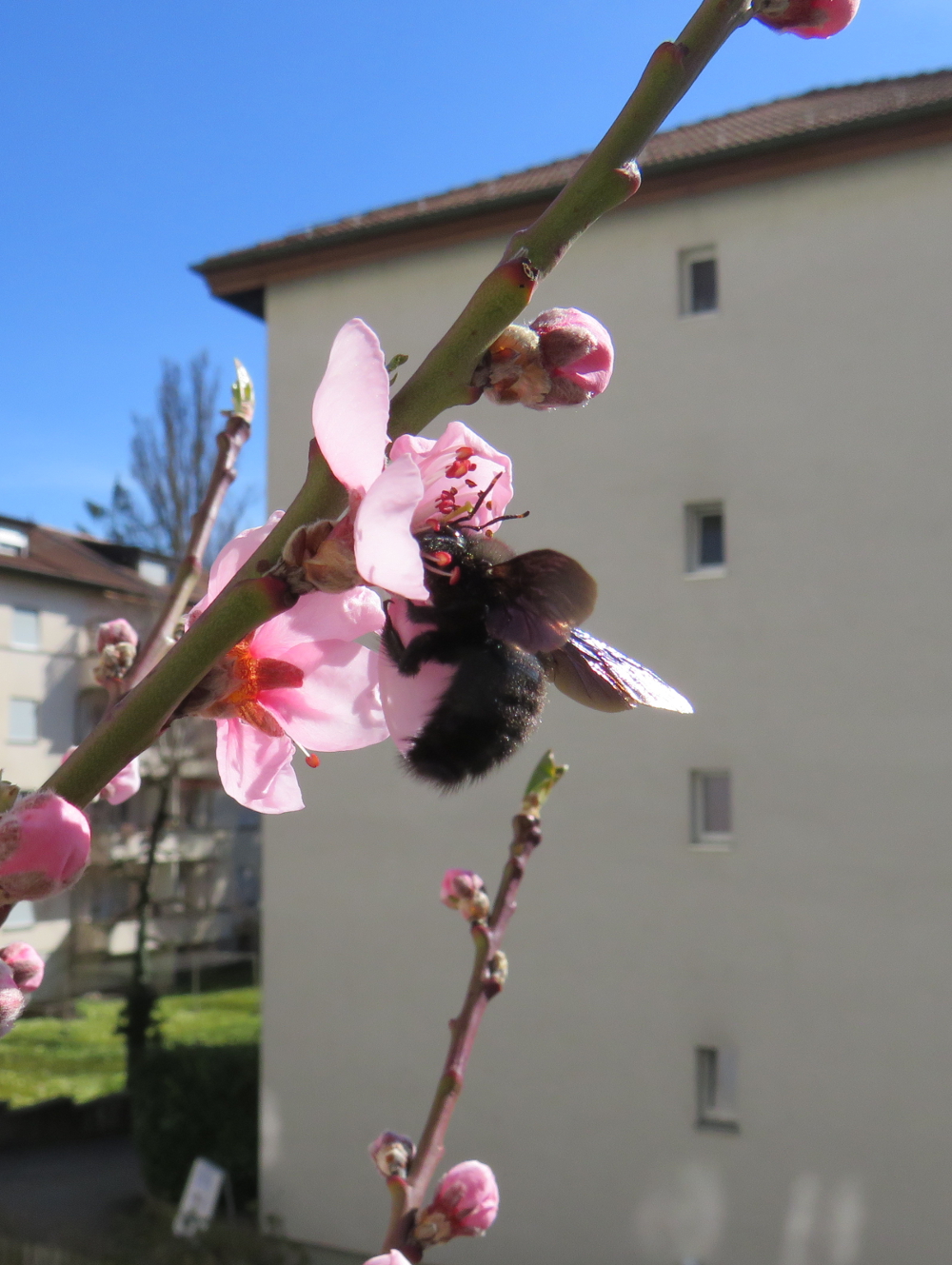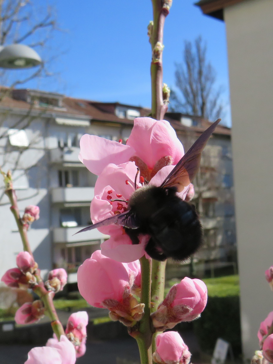 Xylocopa sp. vorbei. Und am frühen Blütenangebot erfreuen sich auch weitere Arten: Hummelköniginnen und Furchenbienen der Gattung
