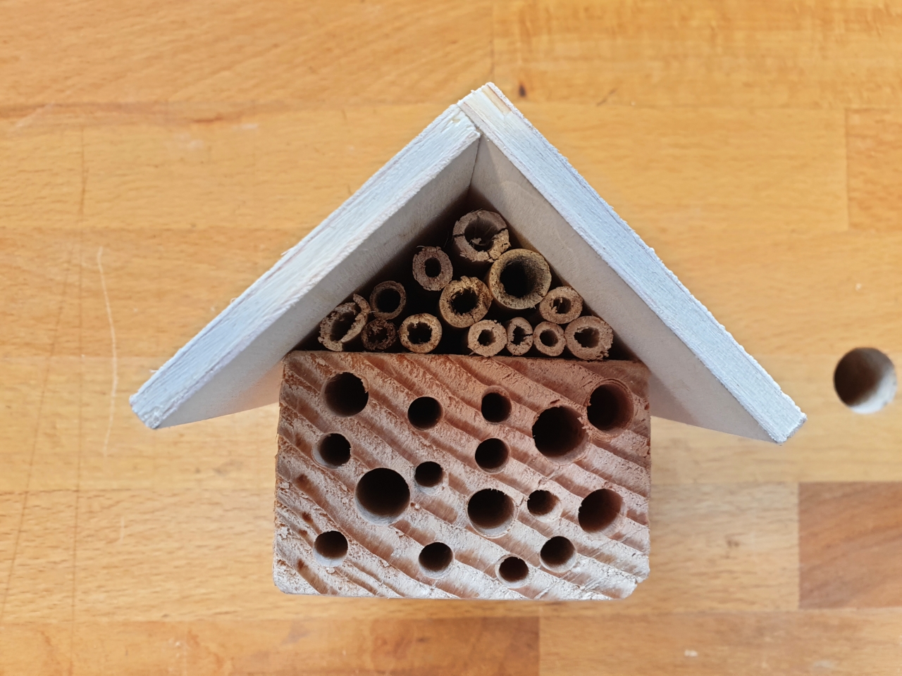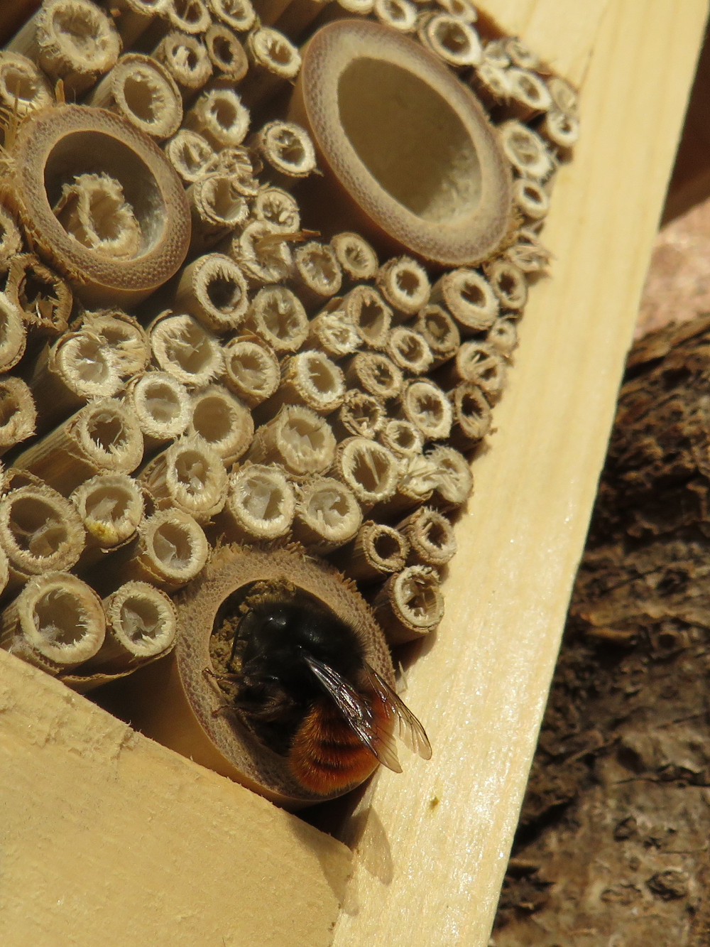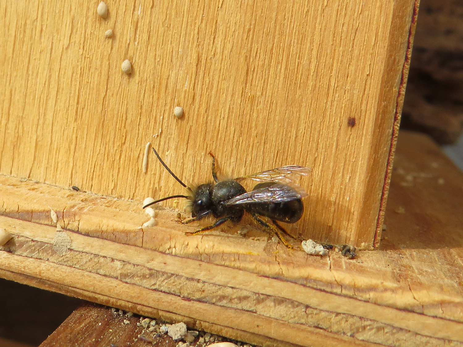Ja, Osmia cornuta ist schnell mal mit einer Nistgelegenheit zufrieden. Es geht auch noch grösser als im vorherigen Beitrag. Diese