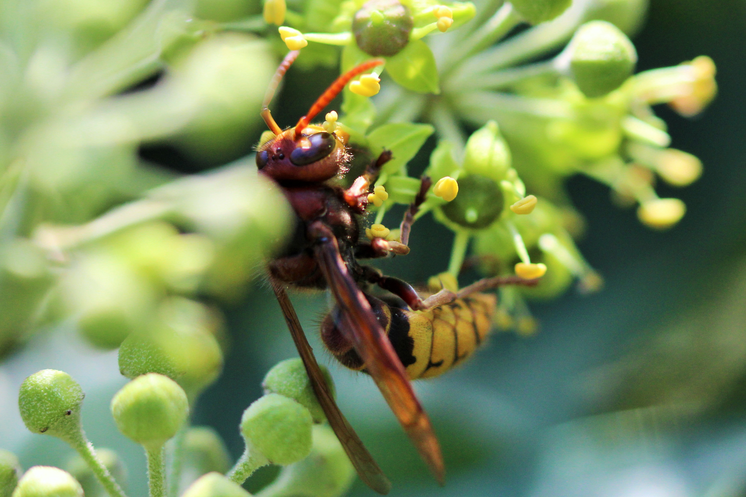 Genau! Für die Hornissen ist der Efeu im Moment ein wahres Schlaraffenland: