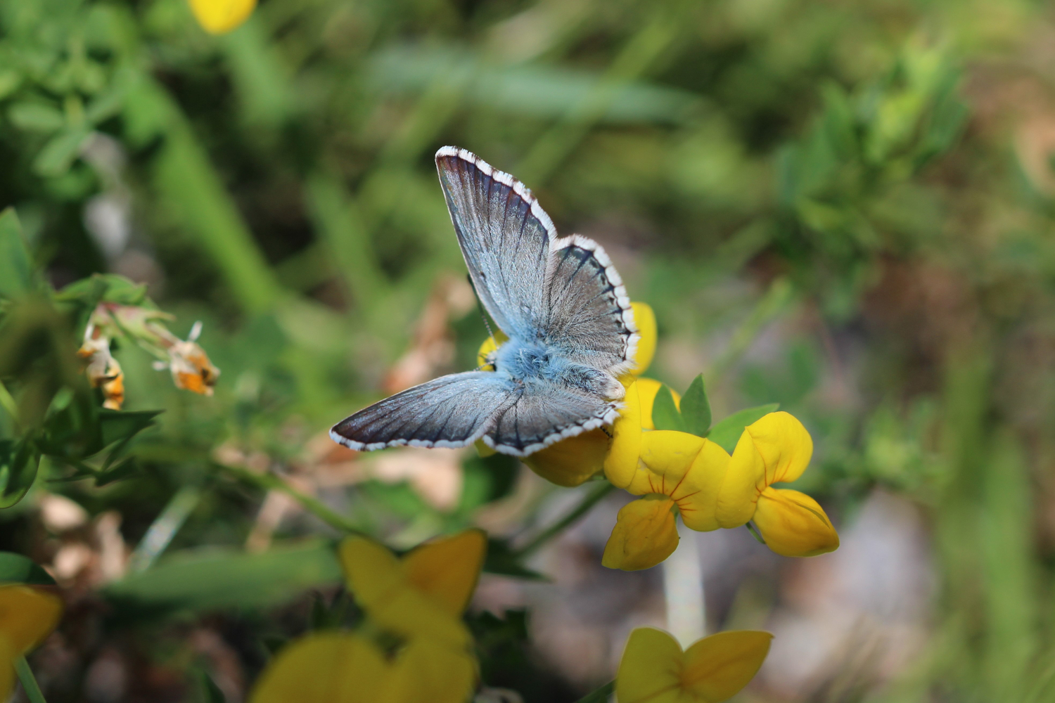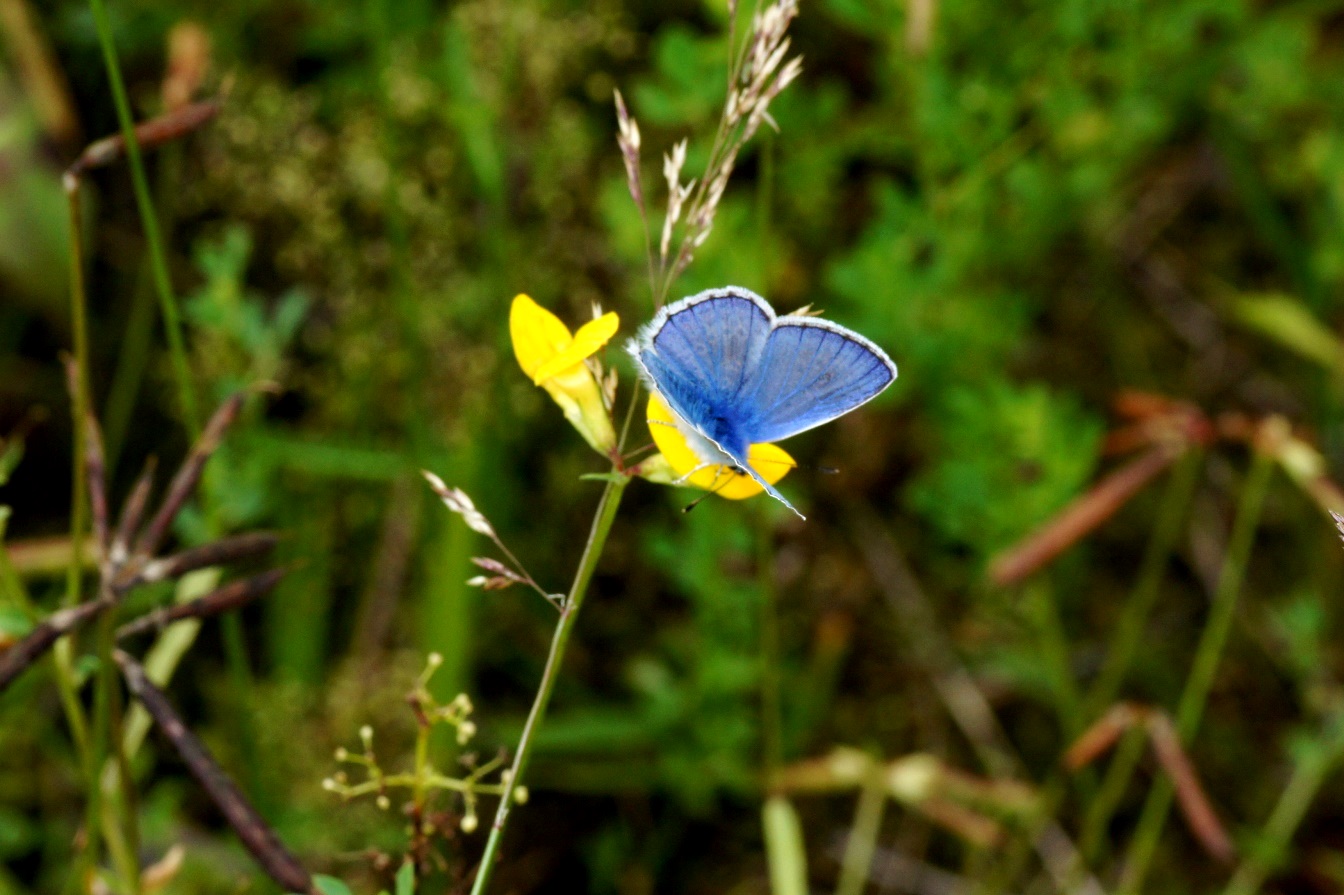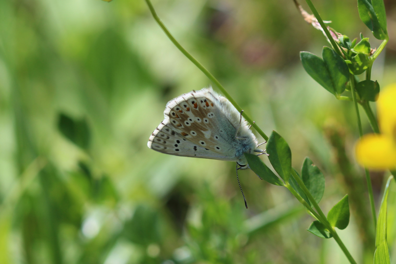 Nach dem grünen Bläuling, den Boro im Beitrag oben gezeigt hat, stelle ich hier zur entgültigen Verwirrung den "Silbergrünen Bläuling" vor, der allerdings nicht grün, sondern silberblau scheint. Polyommatus coridon oder Lysandra coridon (auch hier scheint man sich bei der Zuteilung noch nicht ganz einig zu sein).