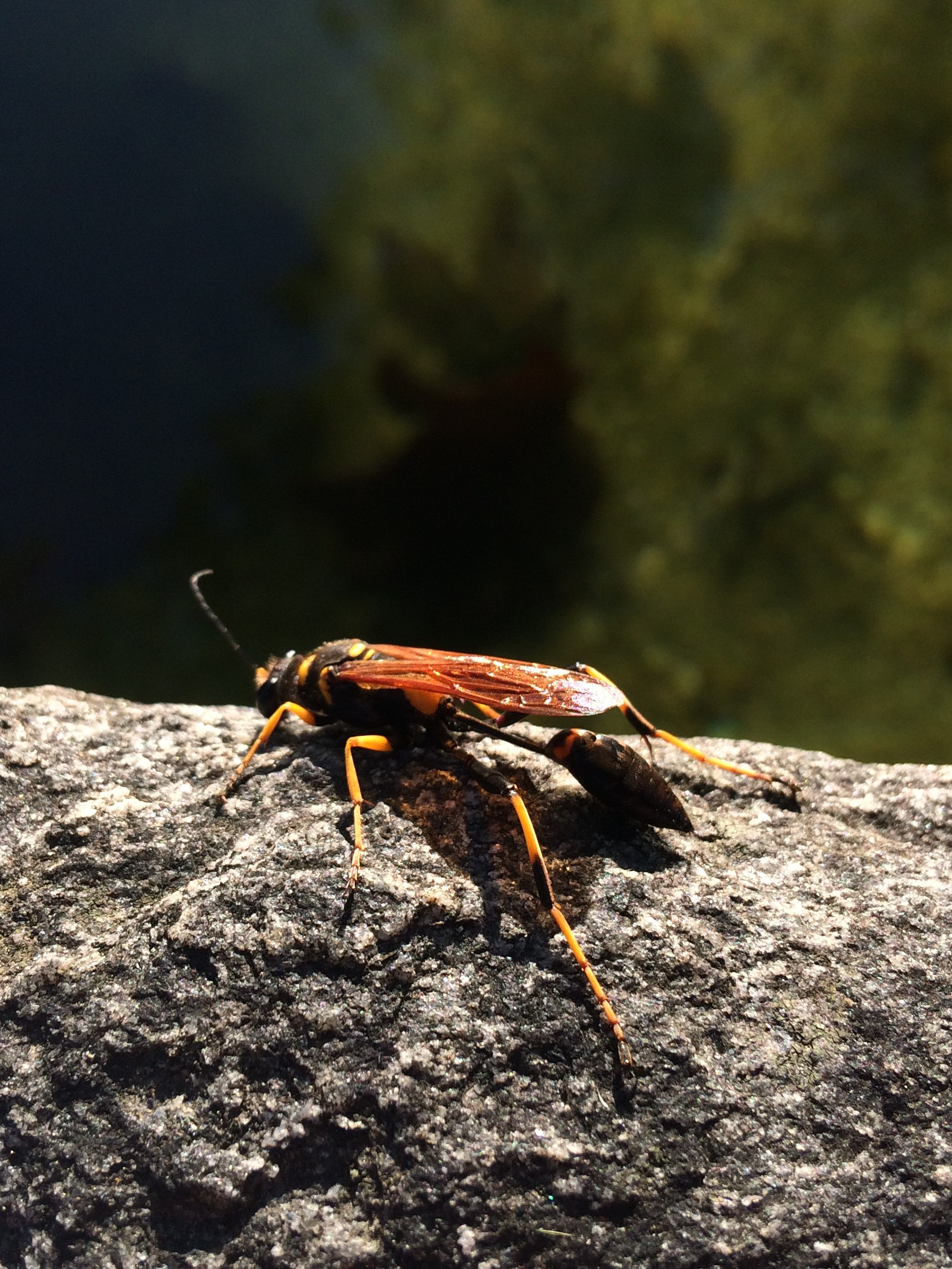 Boro hat Recht. Das ist die Amerikanische Mörtelwespe Sceliphron caementarium. Sie ist durch ihre zitronengelben Beine gekennzeichnet.