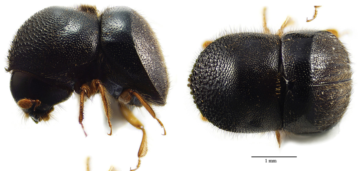 Man ist doch oft überrascht, welche Abwandlungen ein Bauplan wie der von Käfern erfahren kann. Hier ist es ein Vertreter der Familie der Rüsselkäfer (Curculionidae), Unterfamilie Borkenkäfer (Scolytinae).