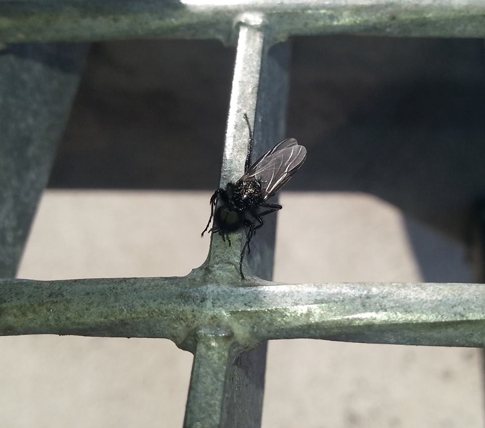 Ein Freund hat mir gestern, nachdem er bereits eine Formica s. str. Gyne fotografieren konnte, zwei Bilder von einer Fliegenart geschickt, die er an seinem Arbeitsplatz oft sieht: