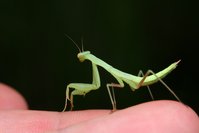 Die heimische Gottesanbeterin Mantis religiosa gehört zu meinen ausgesprochenen Favoriten: Wunderschön, grazil, bedächtig in ihren Bewegungen, selten fliegend, aber in ihrem Fressverhalten doch "grausam"! In den letzten Jahren beachte ich sie zunehmend. Bei uns ist sie keineswegs selten, man muss nur in geeigneten Habitaten ganz vorsichtig suchen: Ruderalflächen, wenig gemähte Wiesen, vergraste Waldränder. Ich verwende keinen Kescher aus Angst die zarten Tiere zu verletzen. Heuer haben wir anlässlich zahlreicher Ausflüge u. Exkursionen schon etliche Exemplare gefunden. Jetzt, wo sie noch klein sind, findet man sie nicht leicht und muss aufpassen, dass man nicht auf die Tierchen tritt. Ihre Färbung ist variabel und richtet sich anscheinend nach dem vorherrschenden Bodenbewuchs.