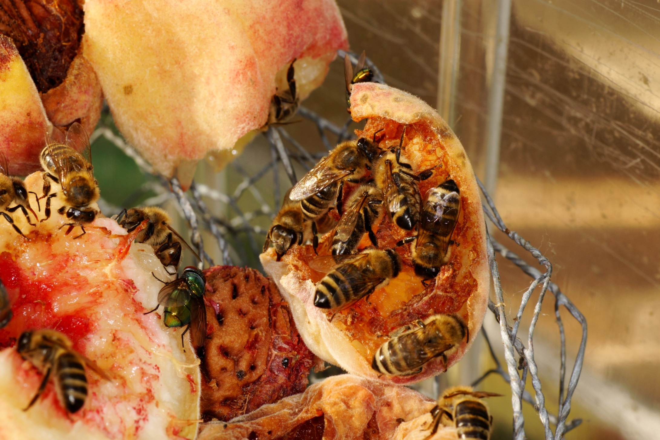 Die Fotos stammen nicht von diesem Jahr, heuer hat ein gewaltiger (trockener) Hagelsturm im Juli alle Gartenfrüchte vollkommen vernichtet. So mussten ältere Bilder herhalten, damals gab es Weinbergpfirsiche, Birnen, Feigen usw. Insektenfreunde lassen Obst eine Zeit lang liegen, für viele Tiere ist es die letzte Nahrung im Jahr.