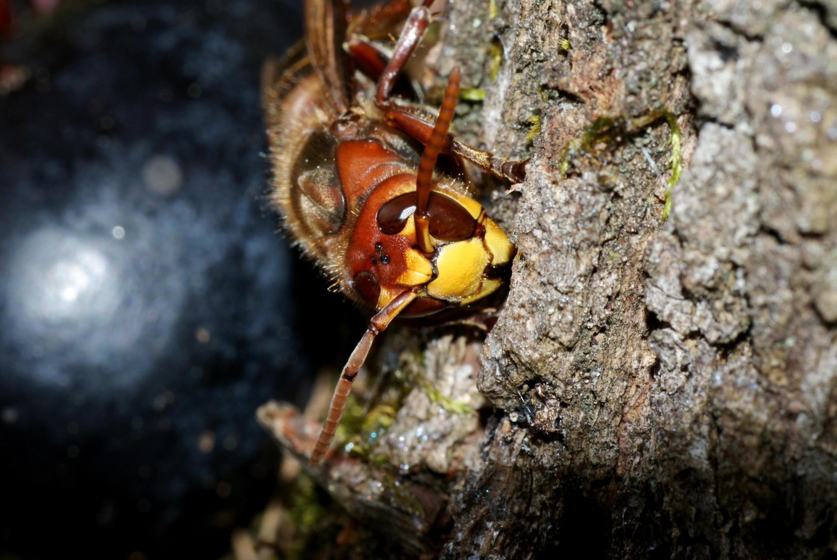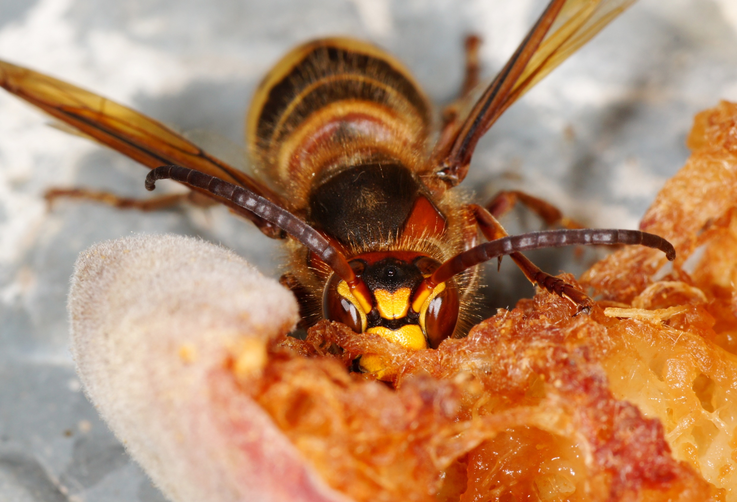 - Vespa crabro, die Form der Fühler weist sofort auch ein Männchen hin