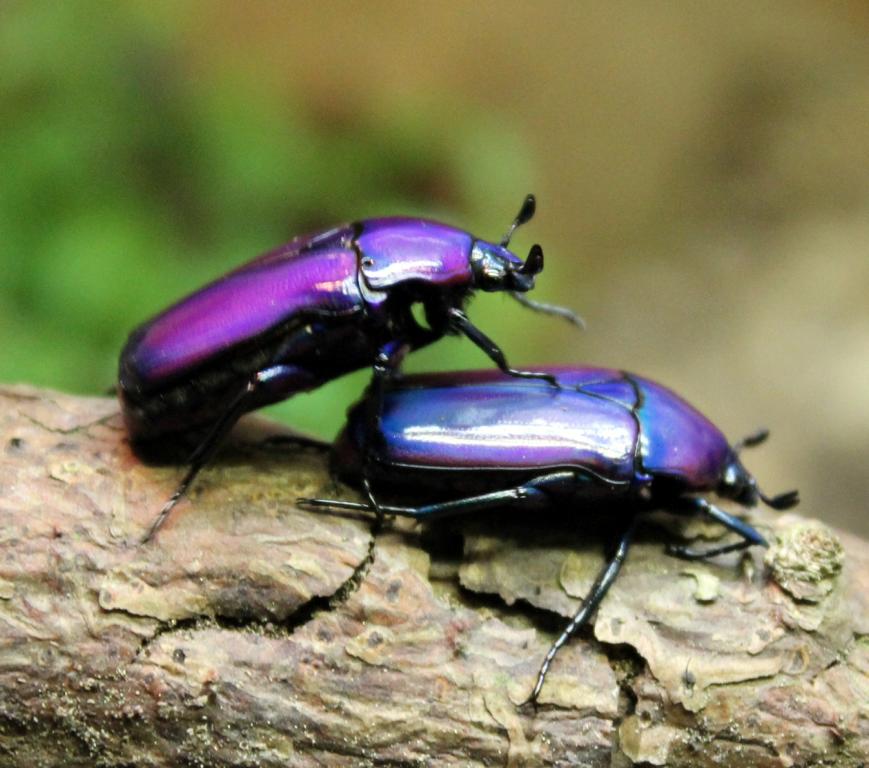 Es sind Rosenkäfer aus Afrika, die durch ihre schöne blau-violette Färbung auffallen: