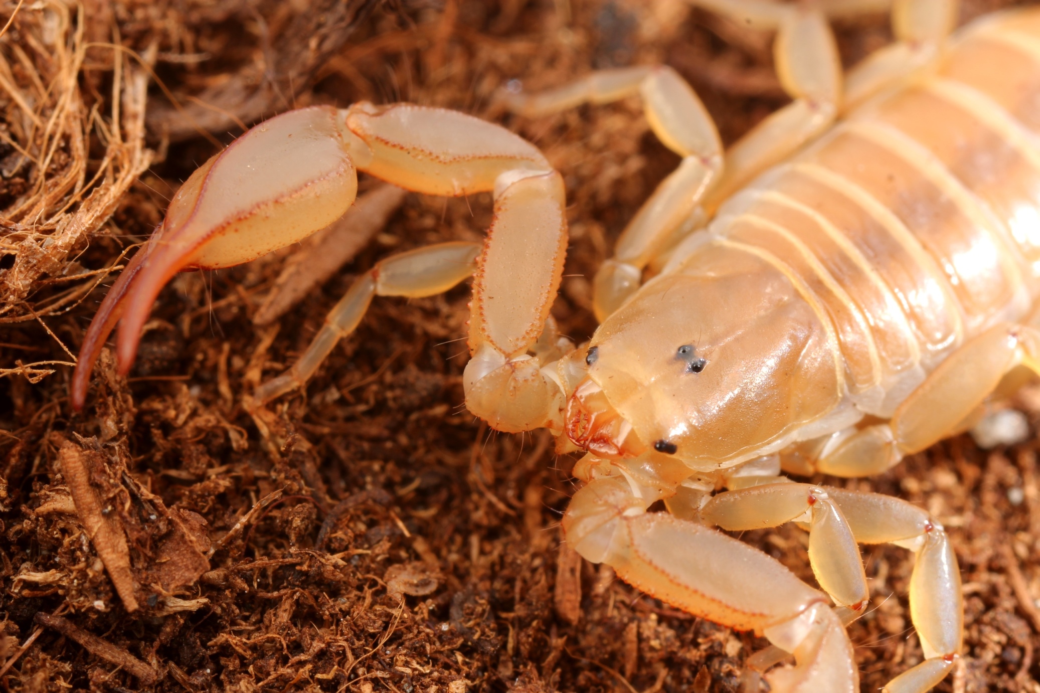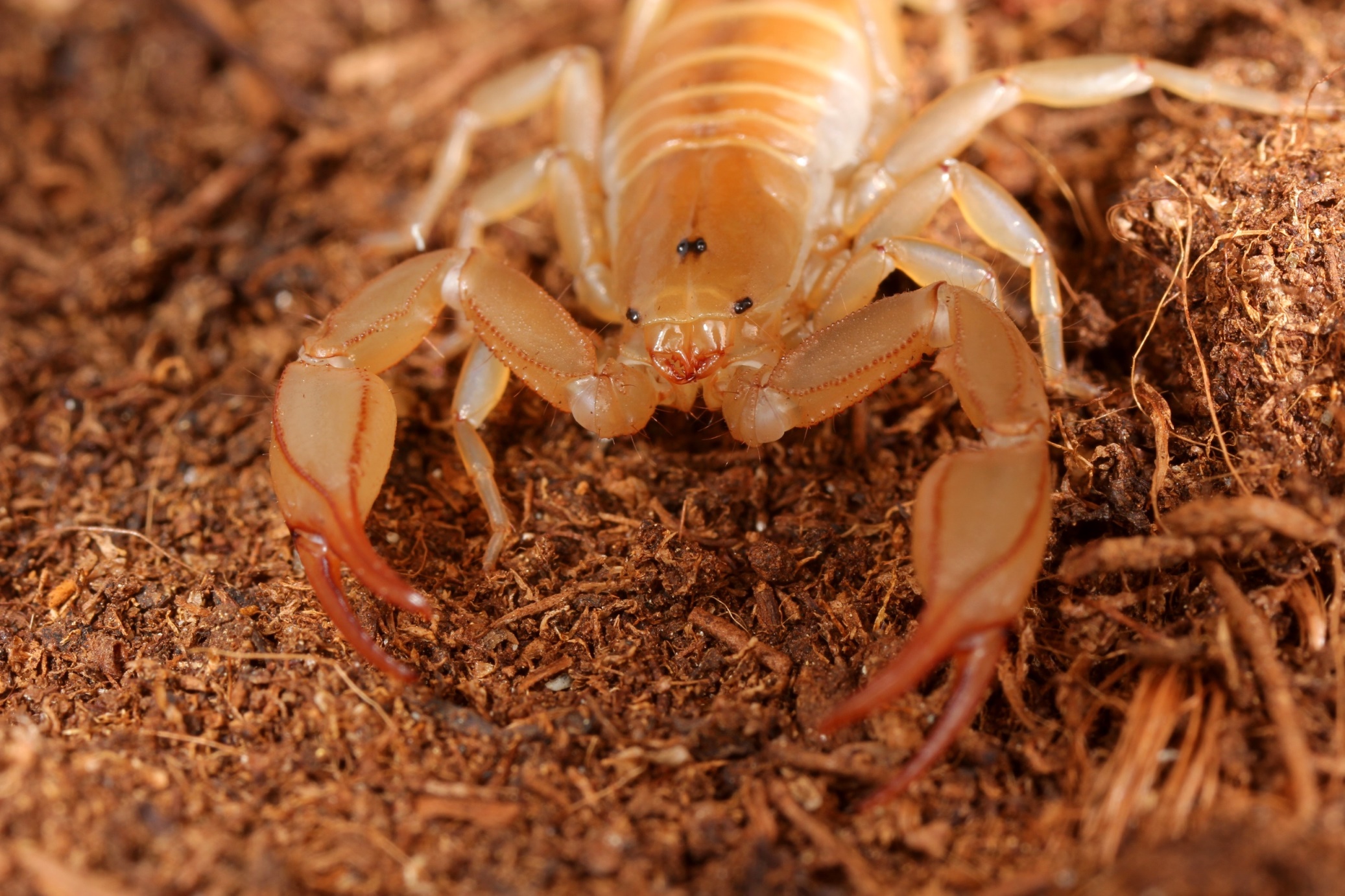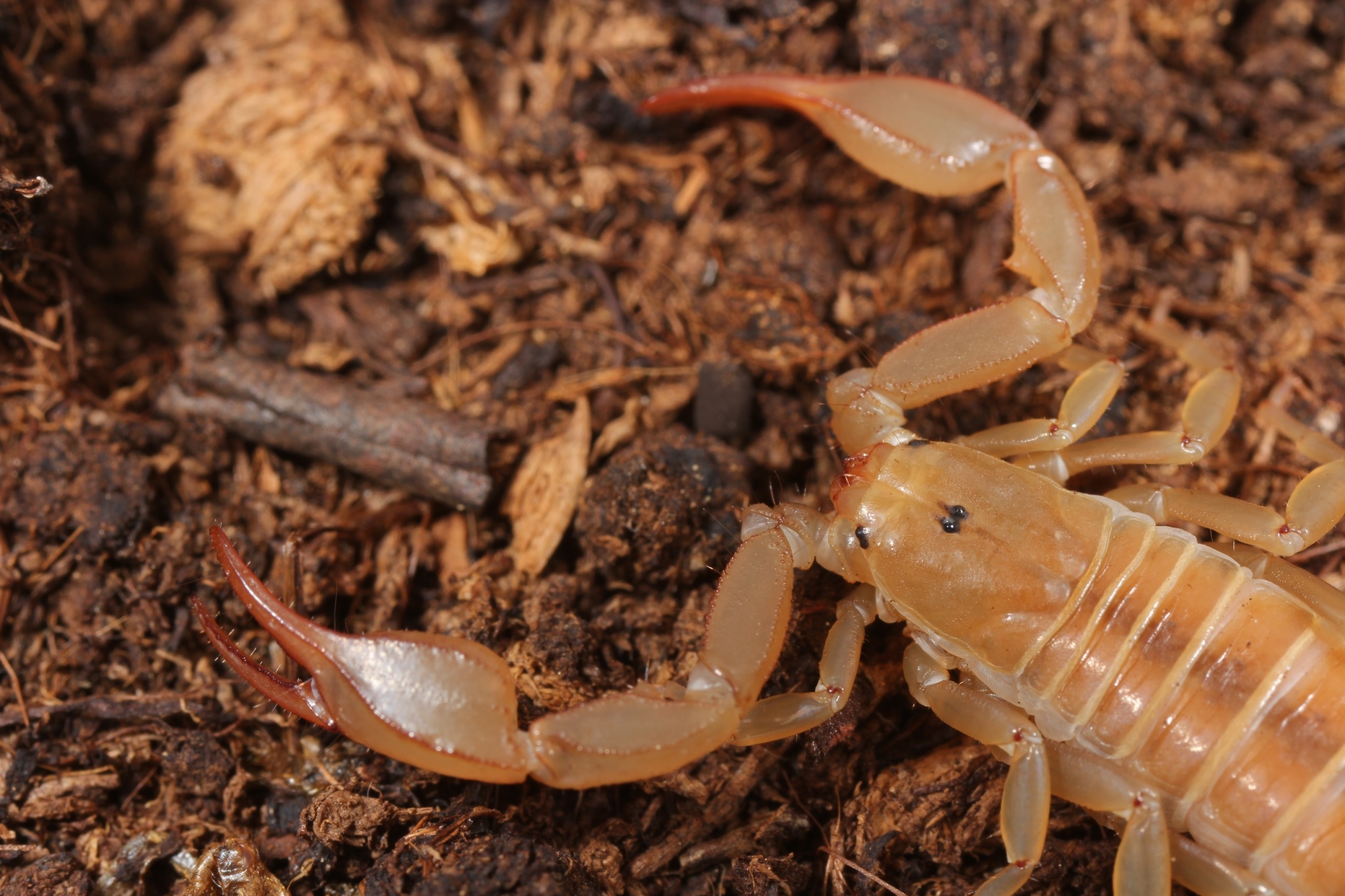 Ein Skorpion im Terrarium ist noch relativ munter, daher ein gutes Objekt für Übungsfotos! Das Tierchen stammt aus Istrien und ist etwa 2 cm groß.