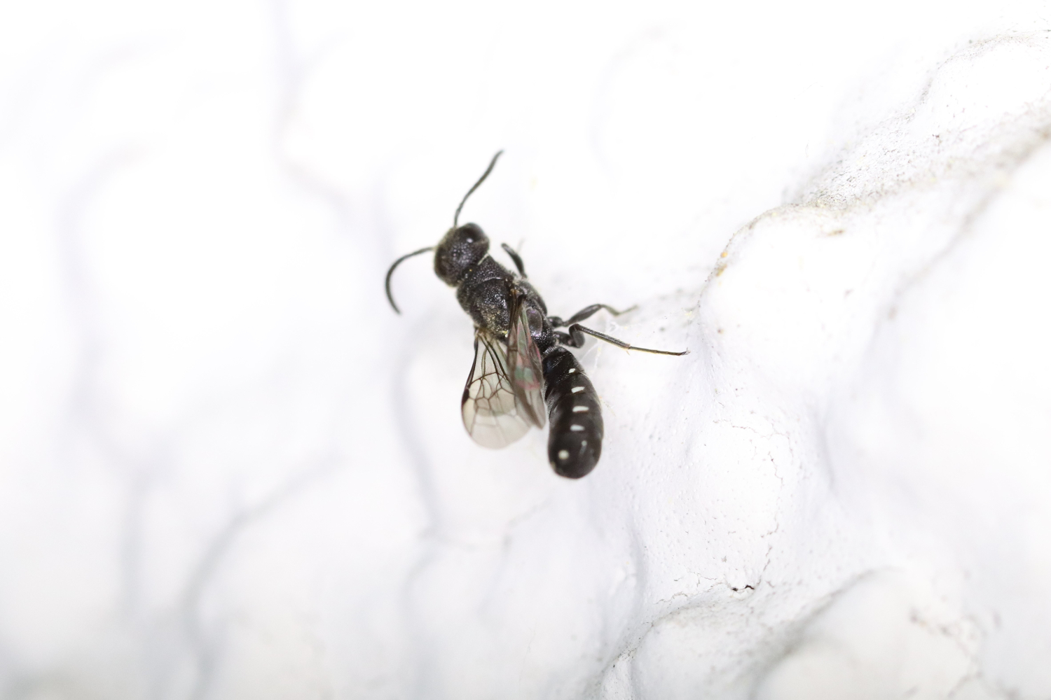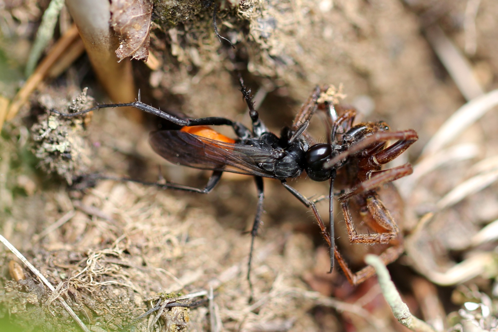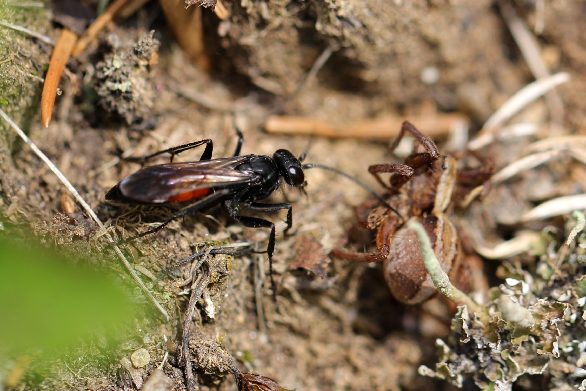 Bild 5. [Die müsste doch einfach zu bestimmen sein. Schwarze Wespe mit schwarzen Flügeln! Aber keine Ahnung!] Inzwischen bekannt: Isodontia mexicana