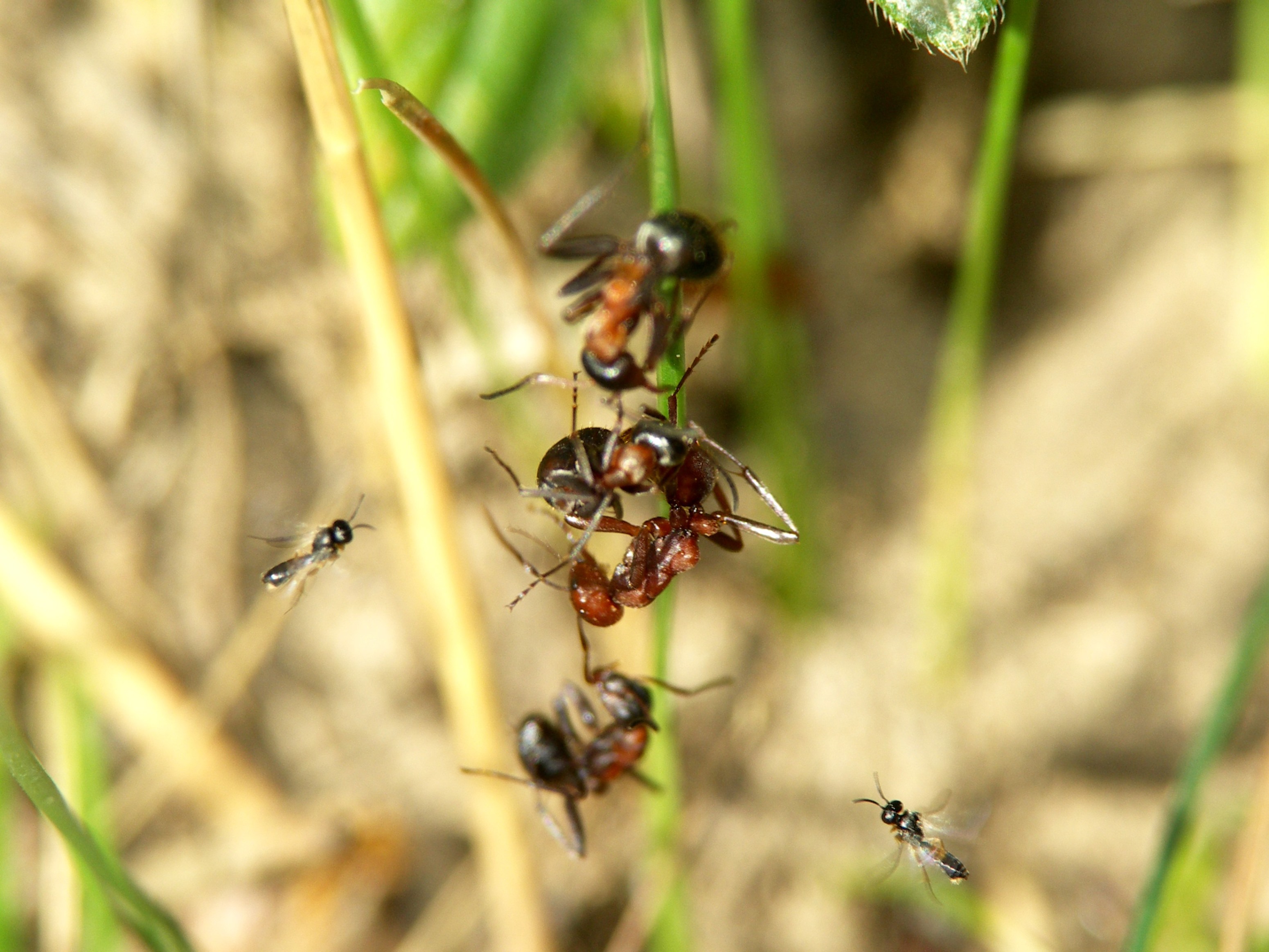 Es gibt auch solitäre Wespen, die Imagines der Ameisen parasitieren. Vor vielen Jahren hatte ich Bilder im alten AF, die jetzt auch gut hierher passen. Die Qualität der Fotos ist aber bescheiden, damals hatte ich noch eine Bridge-Kamera.
