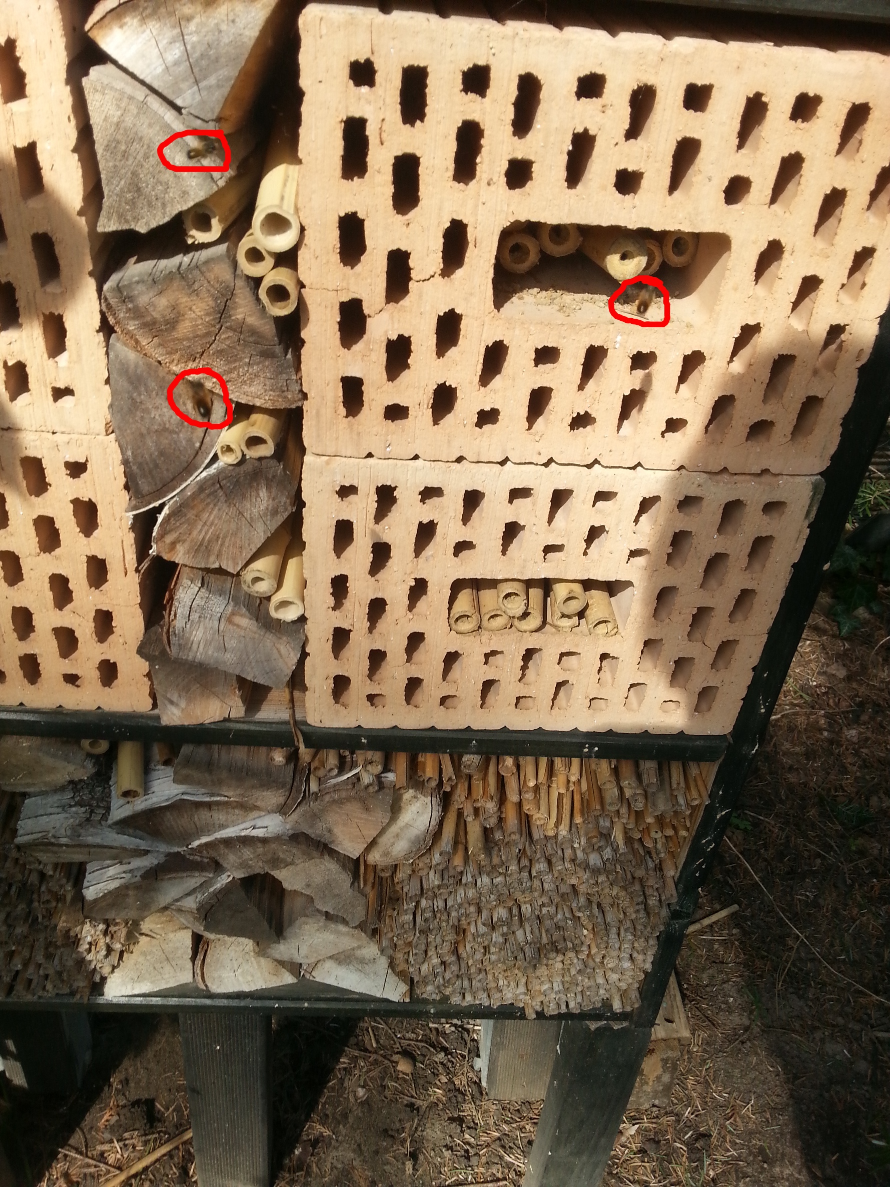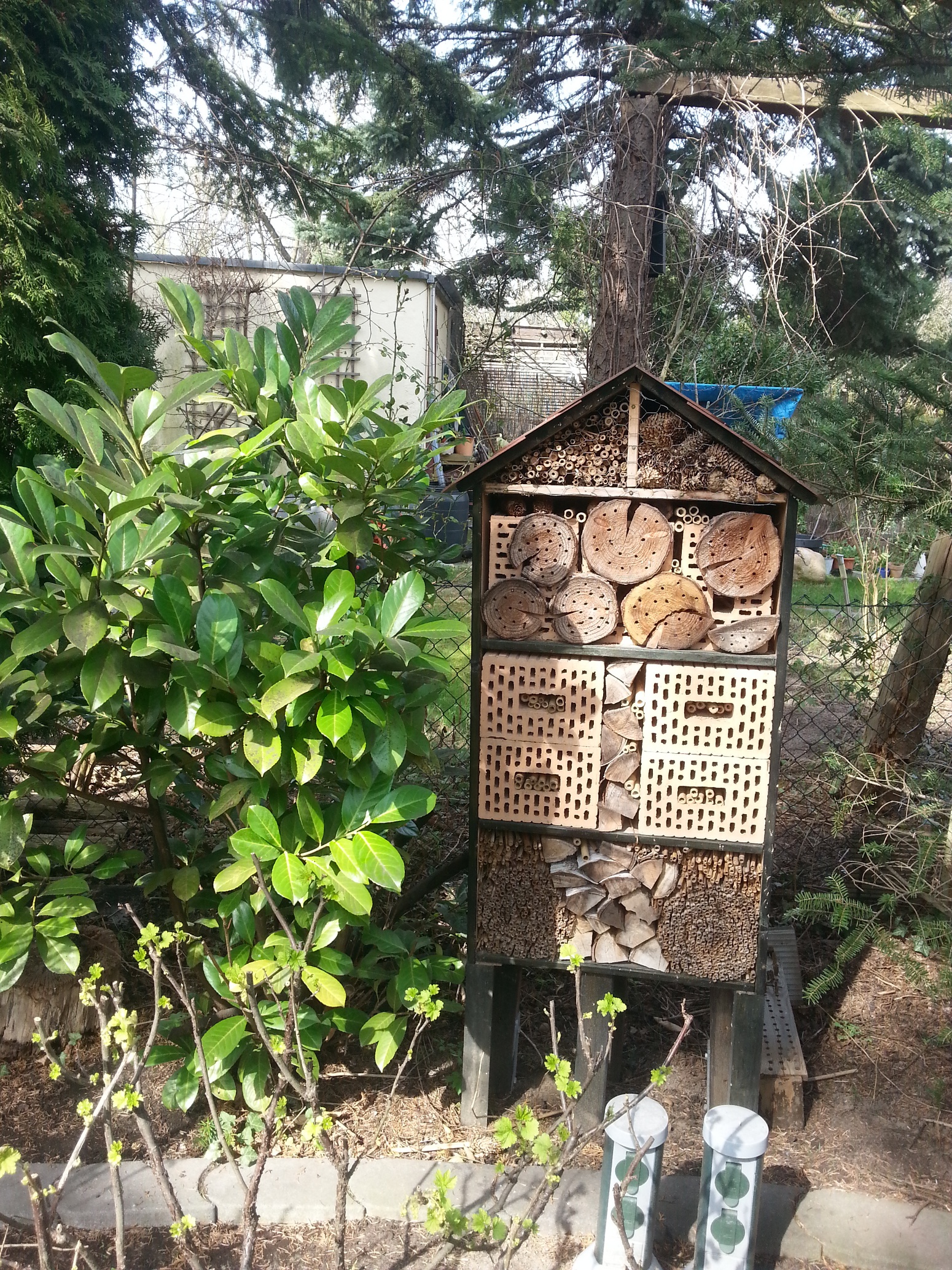 die letzten Tage waren ebenfalls recht warm und so ging es dann richtig los am Insektenhotel.