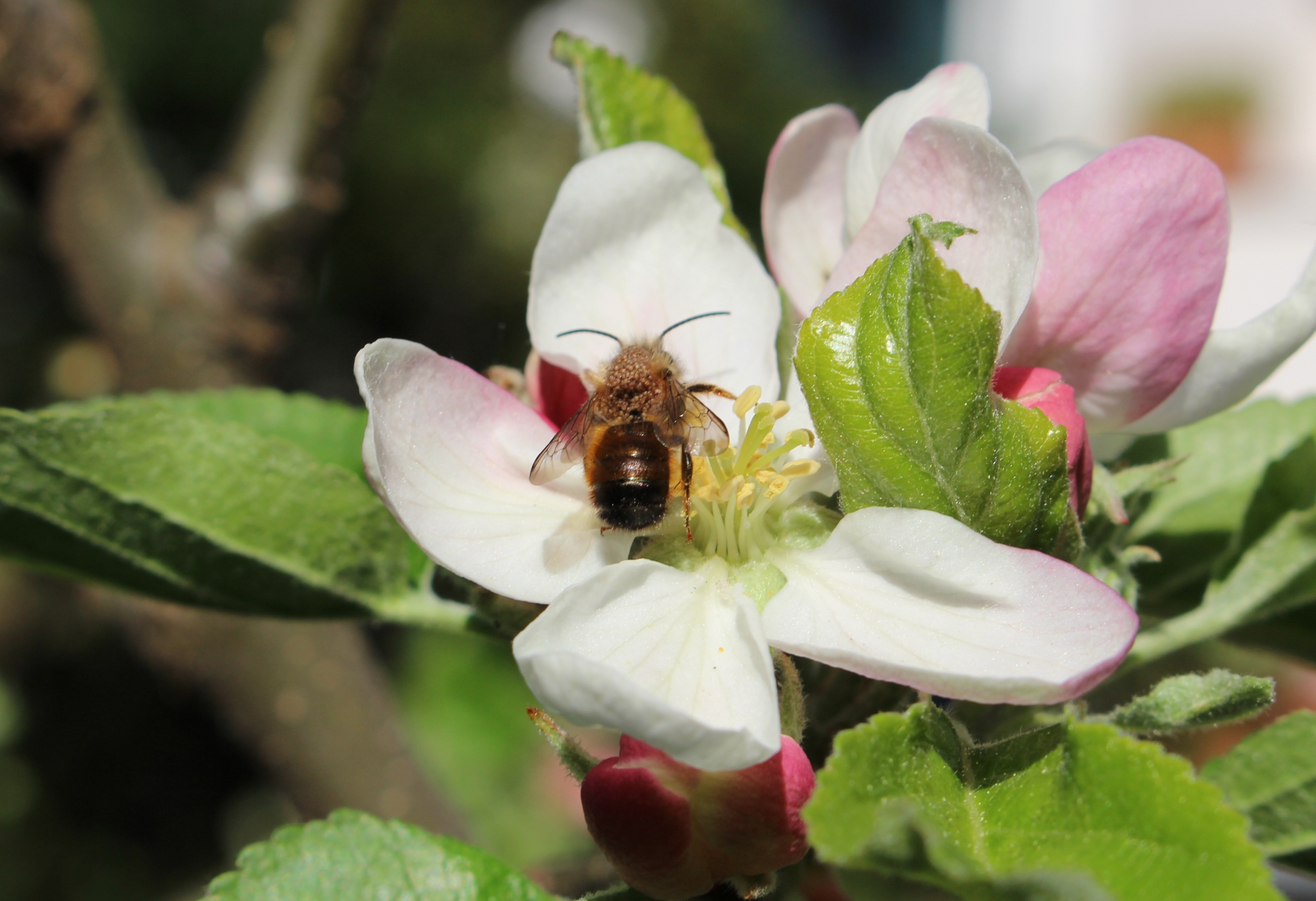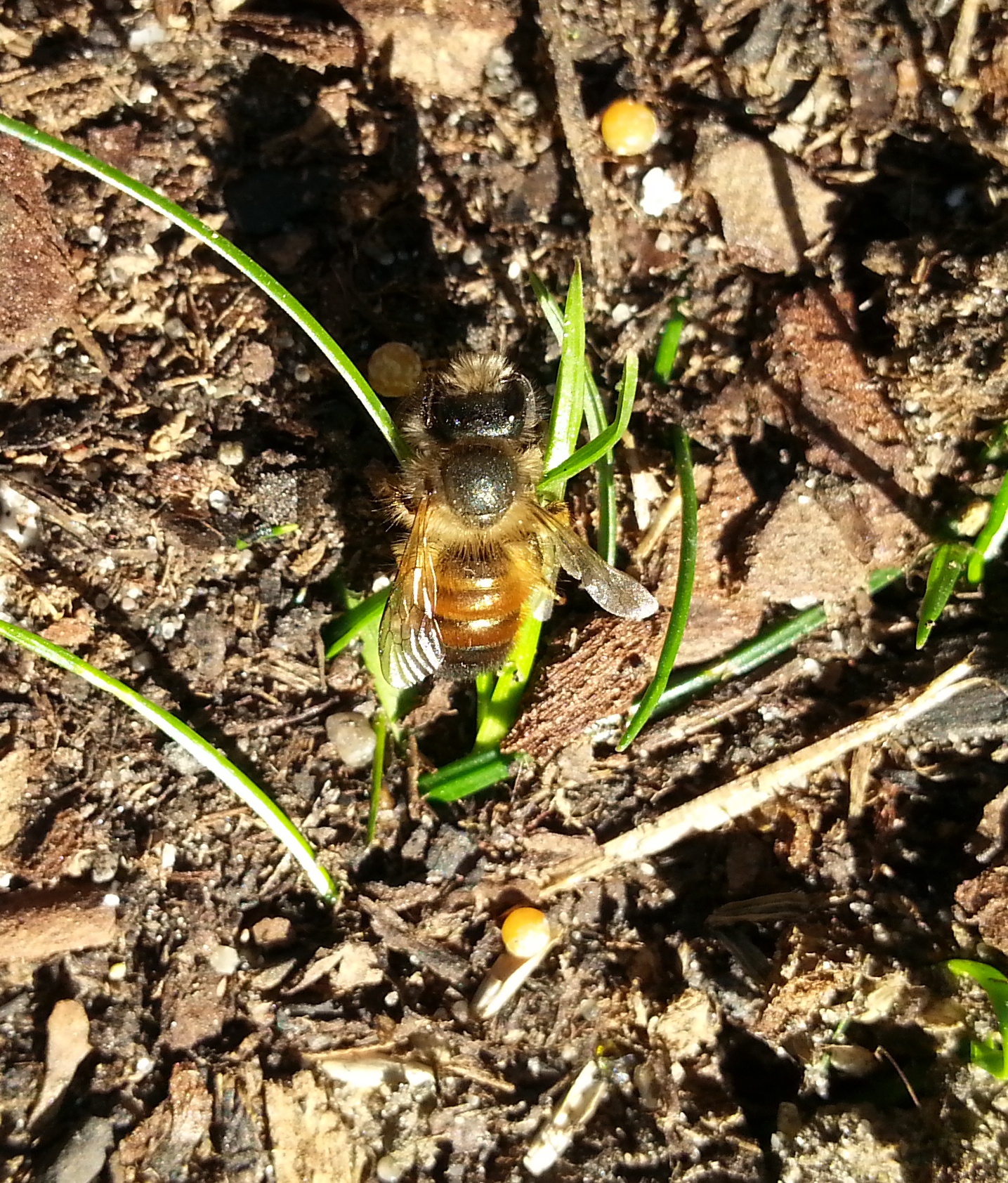Da seit gestern wieder richtig gutes Wetter ist, fliegen hier schon fleißig die Wildbienen umher.
