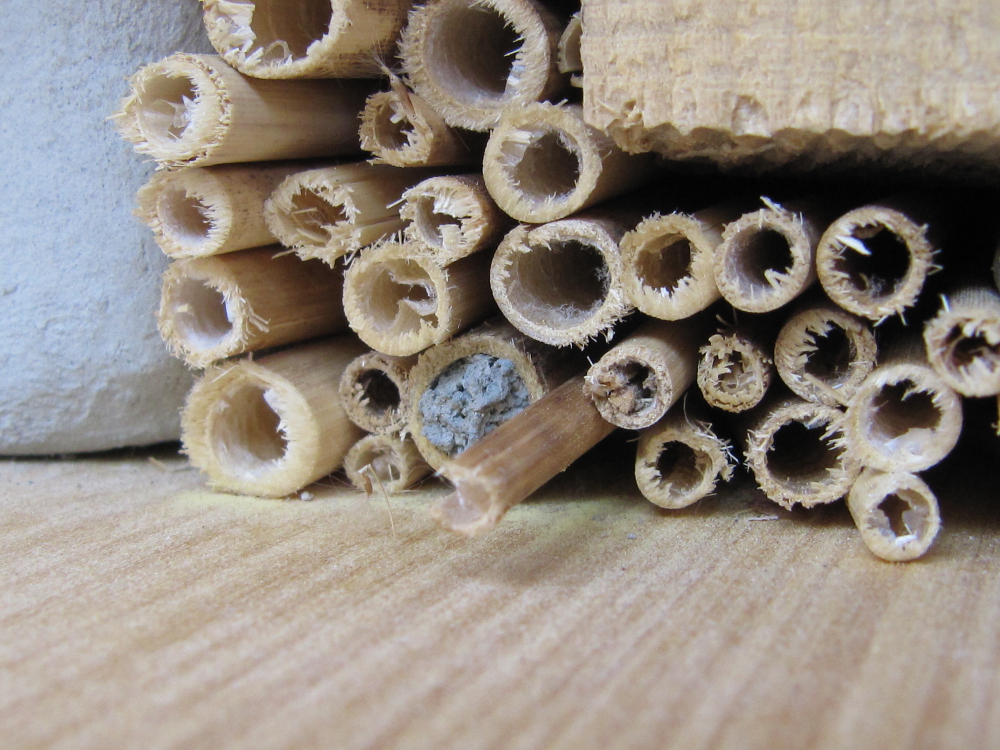 Seit den letzten Tagen wird es wieder ruhiger rund um das Bienenhotel. Die ersten Bienen sterben bereits und auch immer mehr Schilfröhrchen werden verschlossen.