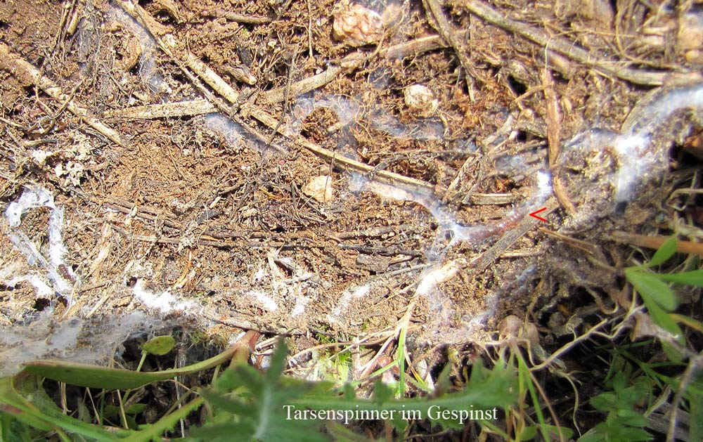 Vor Jahren habe ich mal versucht, Tarsenspinner aus Südfrankreich zu halten: Es ging recht gut in einer Plastikschachtel mit ca. 5 mm dickem Gipsboden, der mäßig feucht gehalten wurde. Zwischen zwei Plexiglasplatten von ca. 6 x10 cm Größe war „Genist“ von einem Messor-Nest eingeklemmt, so dass ein Abstand von ca. 3-4mm eingehalten wurde. Die Tiere haben diese Nistgelegenheit sehr schnell genutzt und ihre Röhren darin angelegt. Für einige Wochen im heißen Sommer konnte ich so ihr Treiben beobachten. Es kam allerdings nicht zur Fortpflanzung, so dass ich auch die Brutpflege nicht verfolgen konnte. Damals (vor der Zeit des Internets) war eben auch nur wenig über diese Tiere zu lesen. – Wenn man im Urlaub mal in Südfrankreich, Spanien, Italien oder auf der Balkanhalbinsel auf Tarsenspinner stößt, könnte sich der Versuch einer Haltung lohnen!