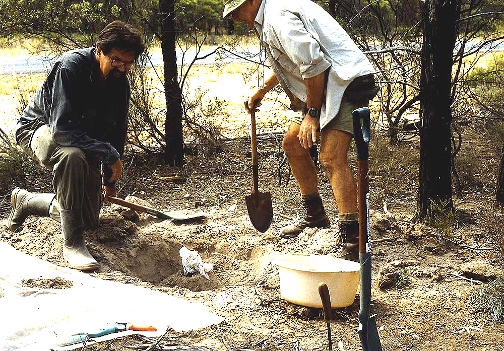 Das Bild zeigt Uli Maschwitz (links) und den vor ein paar Jahren verstorbenen australischen Kollegen Rudy Kohout (Der Fachmann für Polyrhachis!) bei unserer Ausgrabung eines Rhytidoponera-Nestes, in dem die sozialparasitische Polyrhachis loweryi lebte.