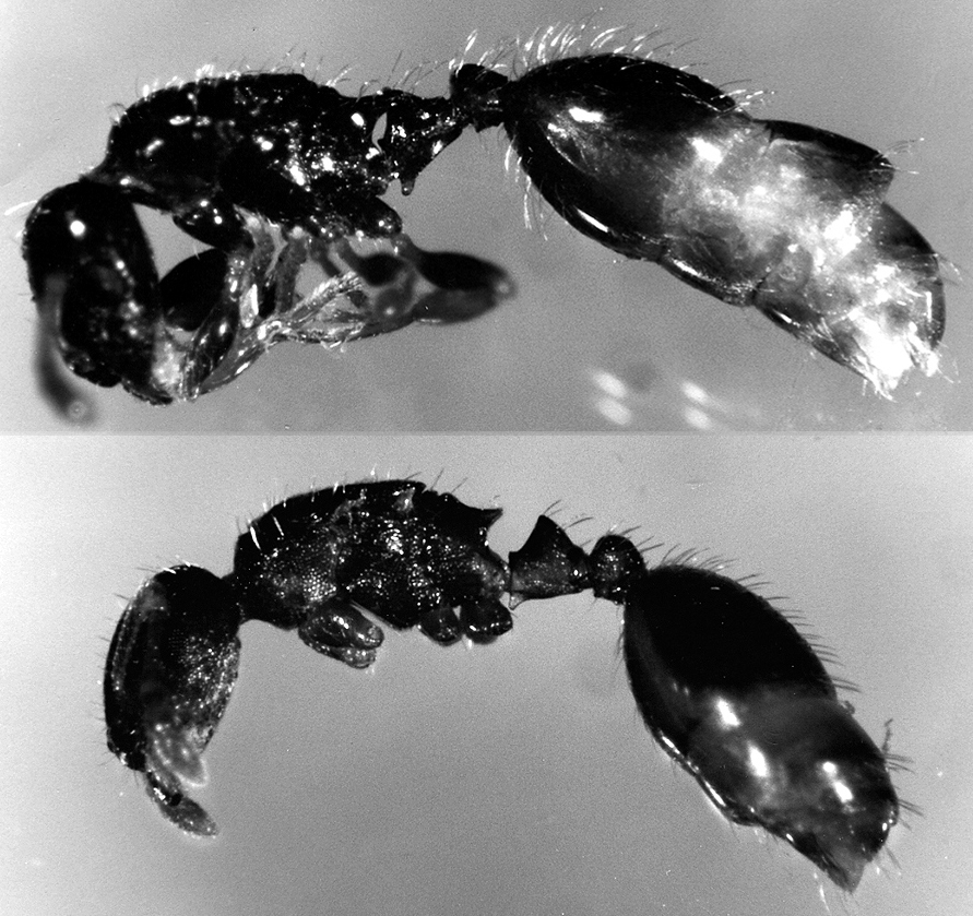 Ist auch kein Ranger in Sicht?? - Eine Sammelerlaubnis konnte ich ja nicht vorher besorgen!).Mein Gastgeber in Mississauga, Prof. Tom Alloway, hatte mir freundlicherweise ein Präpariermikroskop mitgegeben, und so konnte ich die Tierchen gleich in der Lodge genauer ansehen: Das muss doch eine sozialparasitische Art sein, und sie sah der aus den Schweizer Alpen von Kutter beschriebenen Doronomyrmex pacis auffällig ähnlich!