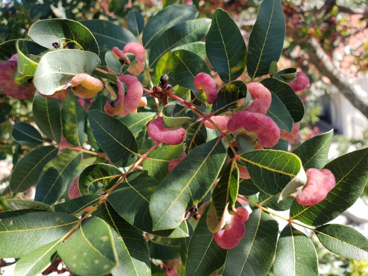 Jedenfalls habe ich so etwas schon an Pistacia sp. (Mastixsträuchern) im Mittelmeergebiet gesehen.