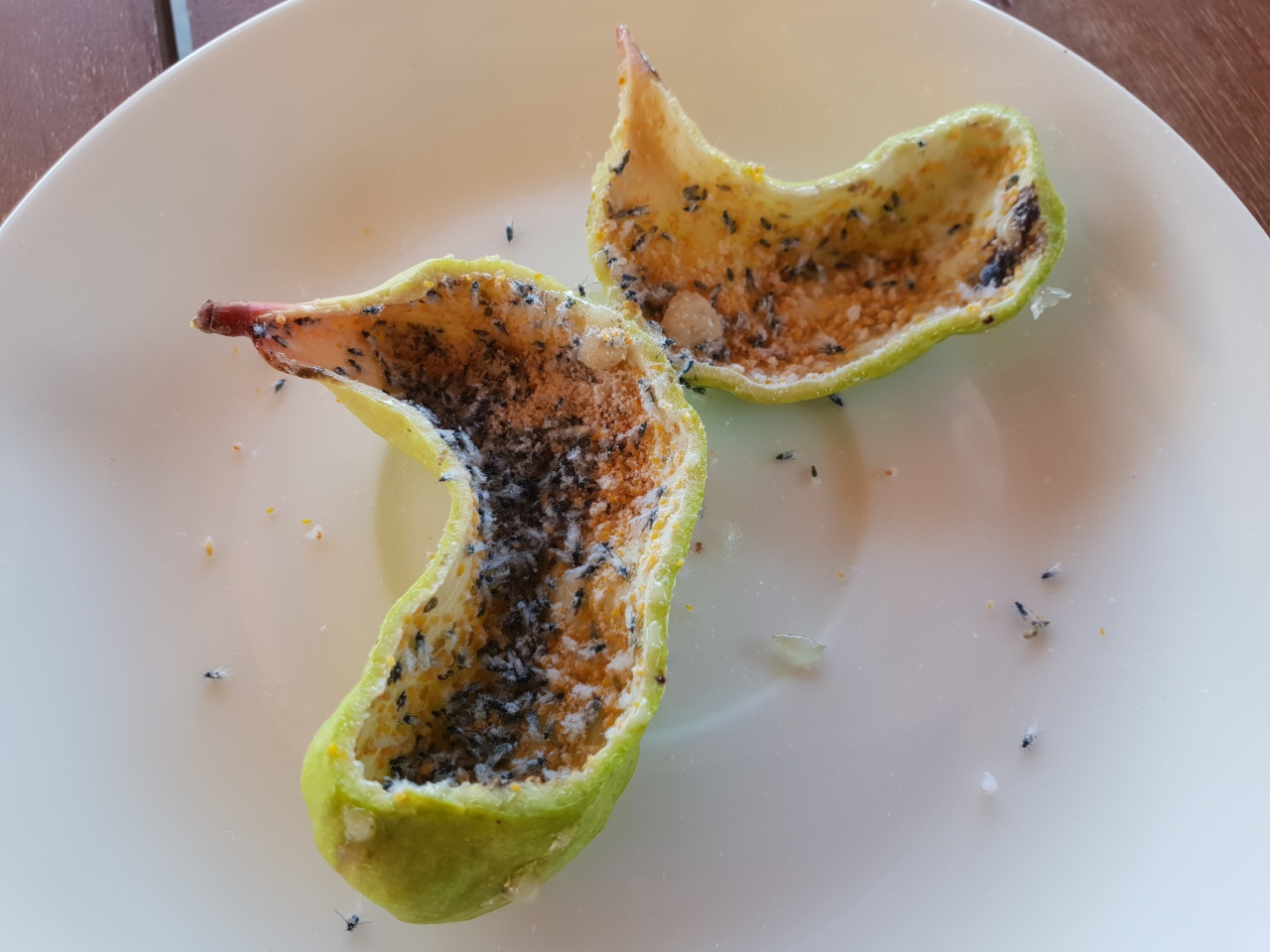 Ich war neugierig und hab die Galle aufgeschnitten. Erstaunlich wie viele Tierchen darin hausen und wenn ich mir Bilder aus dem Netz anschaue, ist durchaus noch mehr möglich.