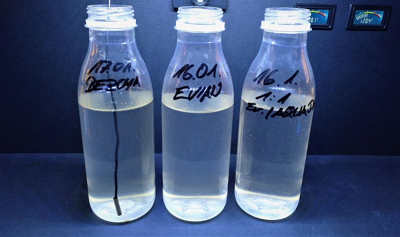 Leitungswasser zu verwenden, wie in den Anleitungen empfohlen, scheidet (für mich) aus, es ist hier relativ stark gechlort und sehr kalkhaltig. Ich habe daher anfangs destilliertes Wasser verwendet, in der Annahme, dass chemisch reines Wasser die beste Lösung ist. Mittlerweile bin ich mir dessen aber gar nicht mehr so sicher. Es ist jedenfalls nicht auszuschließen, dass bestimmte zusätzliche Mineralien, die herstellungsbedingt nicht in den Eier-Salz-Mischungen enthalten sind, für die Artemien von Nutzen sein könnten. Der hoffentlich richtige Mittelweg: Ein "leichtes" Mineralwasser (z.B. Volvic, Evian) oder eine 50:50 Mischung aus Mineralwasser und Aqua dest. (Ich probiere gerade ein paar Varianten aus und werde hier ggf. ergänzen....)
