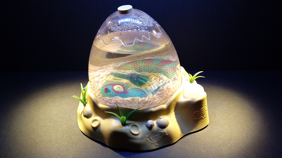 Es gelang mir sogar, die Tierchen zum Wachsen zu bringen. Sie erwiesen sich als elegante Schwimmer, erfreuten sich offensichtlich ihres Daseins und fingen schon bald an, sich zu paaren. Es gab also Nachwuchs im Mini-Aquarium. Das Ganze hat ein paar Monate lang gut funktioniert. Irgendwann aber habe ich es vermutlich mit der Fütterung etwas zu gut gemeint, das Wasser „kippte“ ziemlich plötzlich und die Sea Monkeys verstarben innerhalb weniger Stunden.