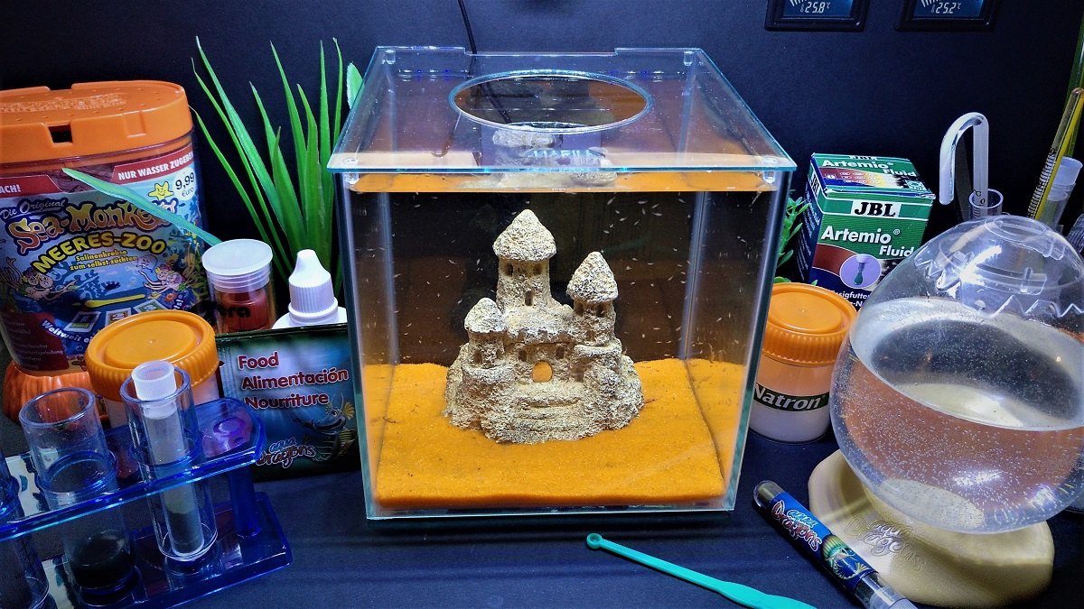 Edit: Wer sich für die Haltung und Aufzucht von Urzeitkrebsen & Co. interessiert, dem empfehle ich die Website Königstigers Urzeitkrebse. In einer darin enthaltenen Unterseite findet sich so ziemlich alles Wissenswertes über die Artemien ("Sea Monkeys", "Aqua Dragons"). In der Website steckt offen-sichtlich eine Menge Arbeit. Absolut gut gemacht und voller wertvoller Informationen! (Leider wird sie anscheinend seit 2014 nicht mehr fortgeführt...)