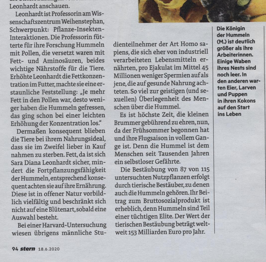 Dann kommt der ganz dicke Hammer: Der Vergleich von Hummeln mit menschlichen Versuchspersonen, die sich eher von industriell verarbeiteten Lebensmitteln ernährten, und pro Ejakulat 45 Millionen weniger Spermien aufwiesen als jene, die auf gesunde Nahrung achteten. „So viel zur geistigen (und sexuellen) Überlegenheit des Menschen über die Hummel.