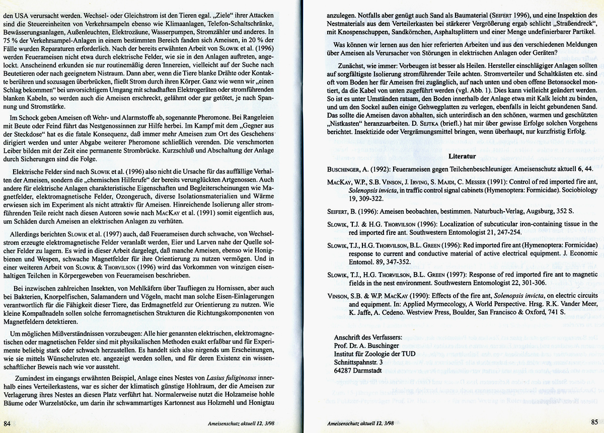 Ein nicht ganz neuer Bericht aus der Zeitschrift der Dt. Ameisenschutzwarte, aber vielleicht doch für den einen oder anderen auch heute noch interessant dürfte dieser Artikel aus 1998 sein.