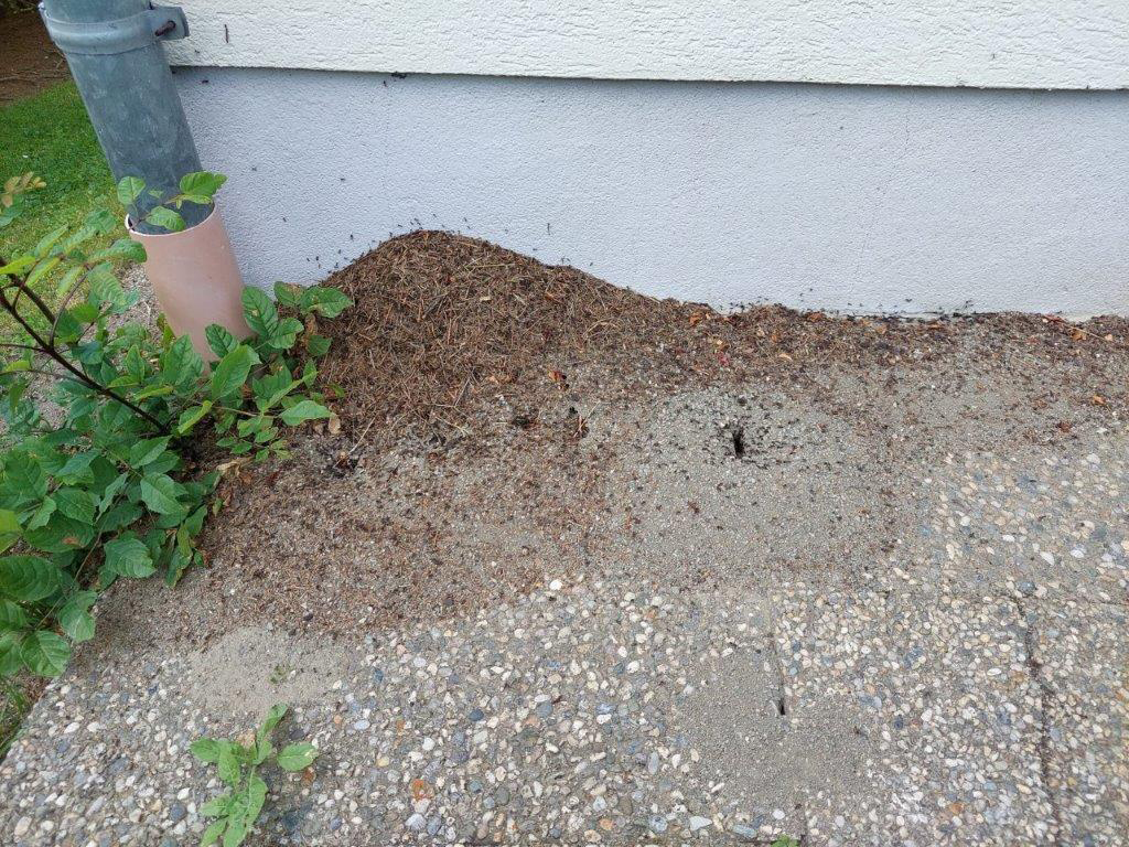 Zu dem Waldameisennest, das an die Hauswand gezogen ist: