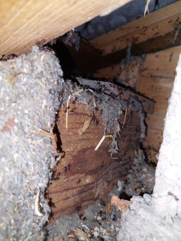 Weshalb der Titel: Der damals Betroffene sandte eine Mail. Dank Bauarbeiten war eine Öffnung im Dach entstanden, und gleichzeitig fand in der Gegend ein massiver Hochzeitsflug von Lasius spp. statt; einige Gynen wurden unter der Öffnung im Zimmer gefunden. Die Frage an mich war nun: Besteht die Gefahr, dass sich solche Königinnen im Haus einnisten, dass wieder ein Befall auftritt? Entsprechend groß ist die Sorge!